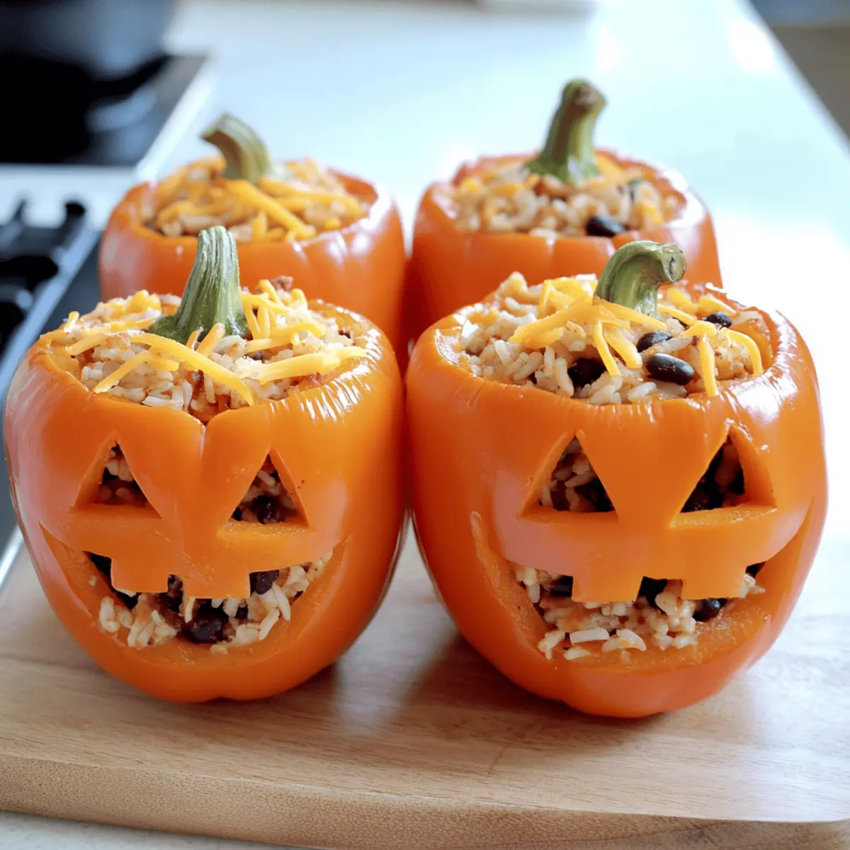 Fun, Festive Presentation: These jack-o-lantern stuffed peppers are a delightful way to celebrate Halloween, making meals more appealing for kids and adults alike.