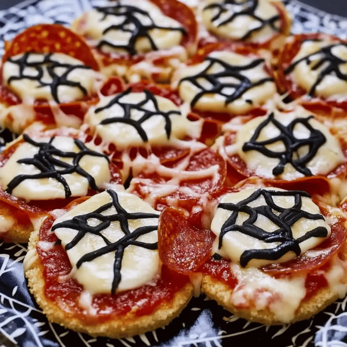 Absolutely! To freeze your Spider Web Pizza Bites, prepare them unbaked and place them on a baking sheet lined with parchment paper. Freeze for about 1-2 hours until firm, then transfer them to a zip-top bag and store in the freezer for up to 2 months. When you’re ready to bake, simply put them straight into a preheated oven at 375°F (190°C) for 12-15 minutes, and you’ll have them fresh out of the oven in no time!