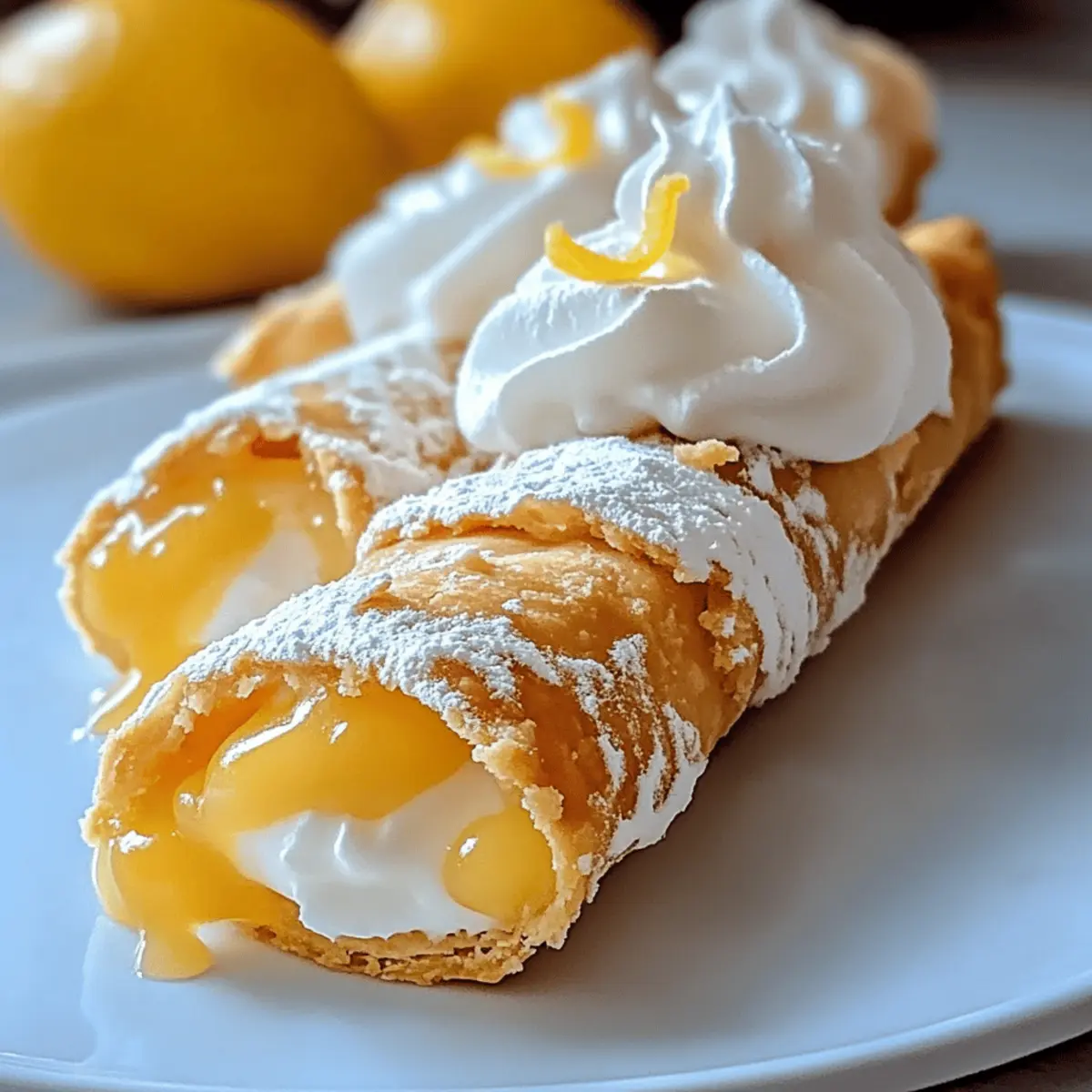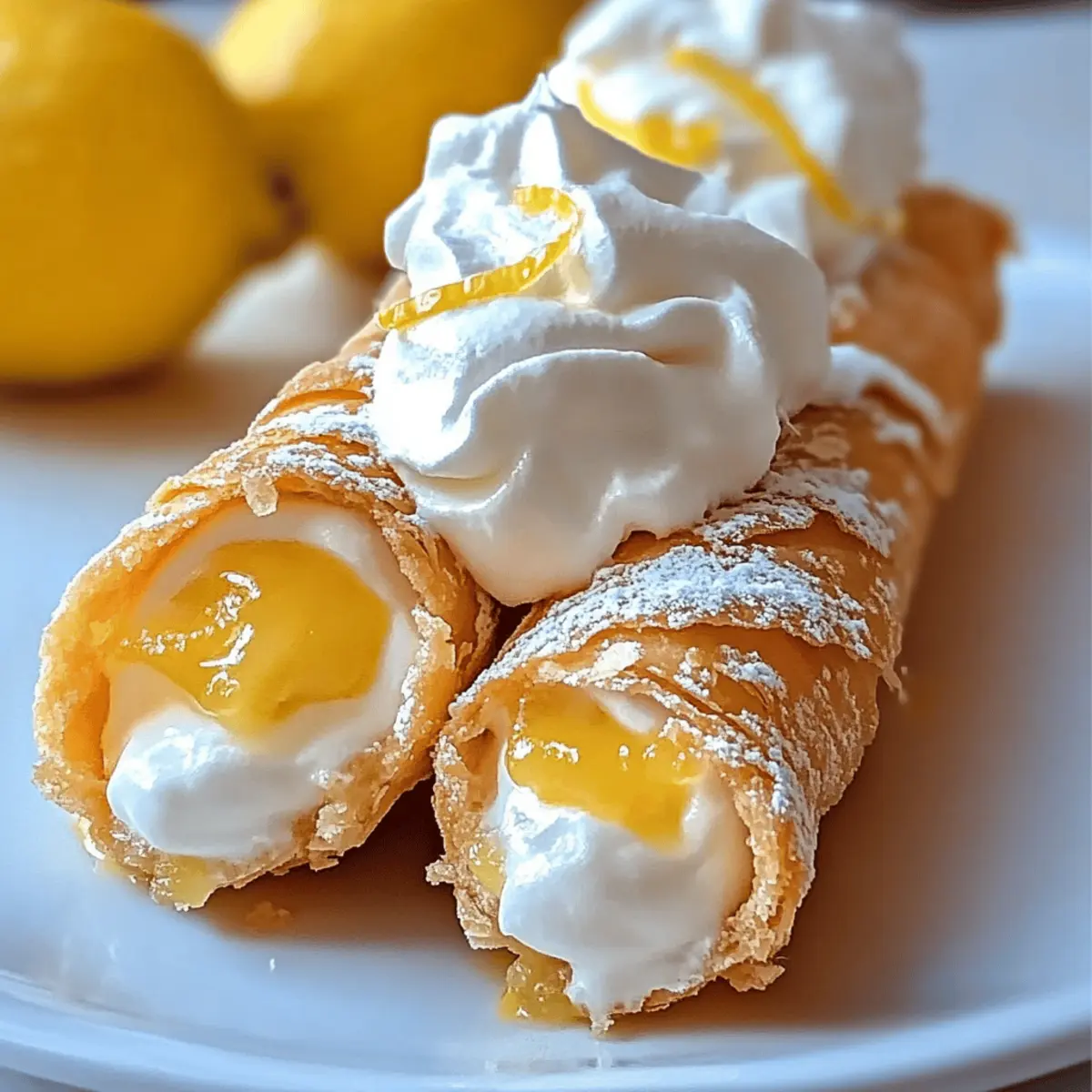 Dust the whipped cream and filled cannoli with powdered sugar and sprinkle lemon zest over the top for a burst of aromatic brightness. If you like, add a lemon slice on each cannoli as a garnish for extra flair. These little touches enhance the overall presentation of your Lemon Meringue Pie Cannoli.