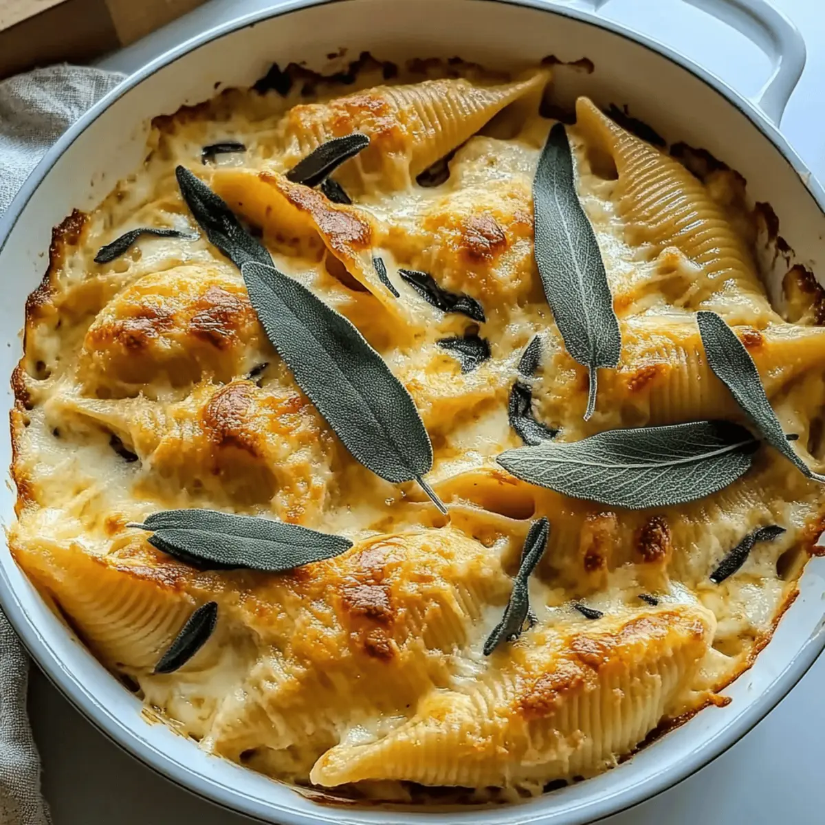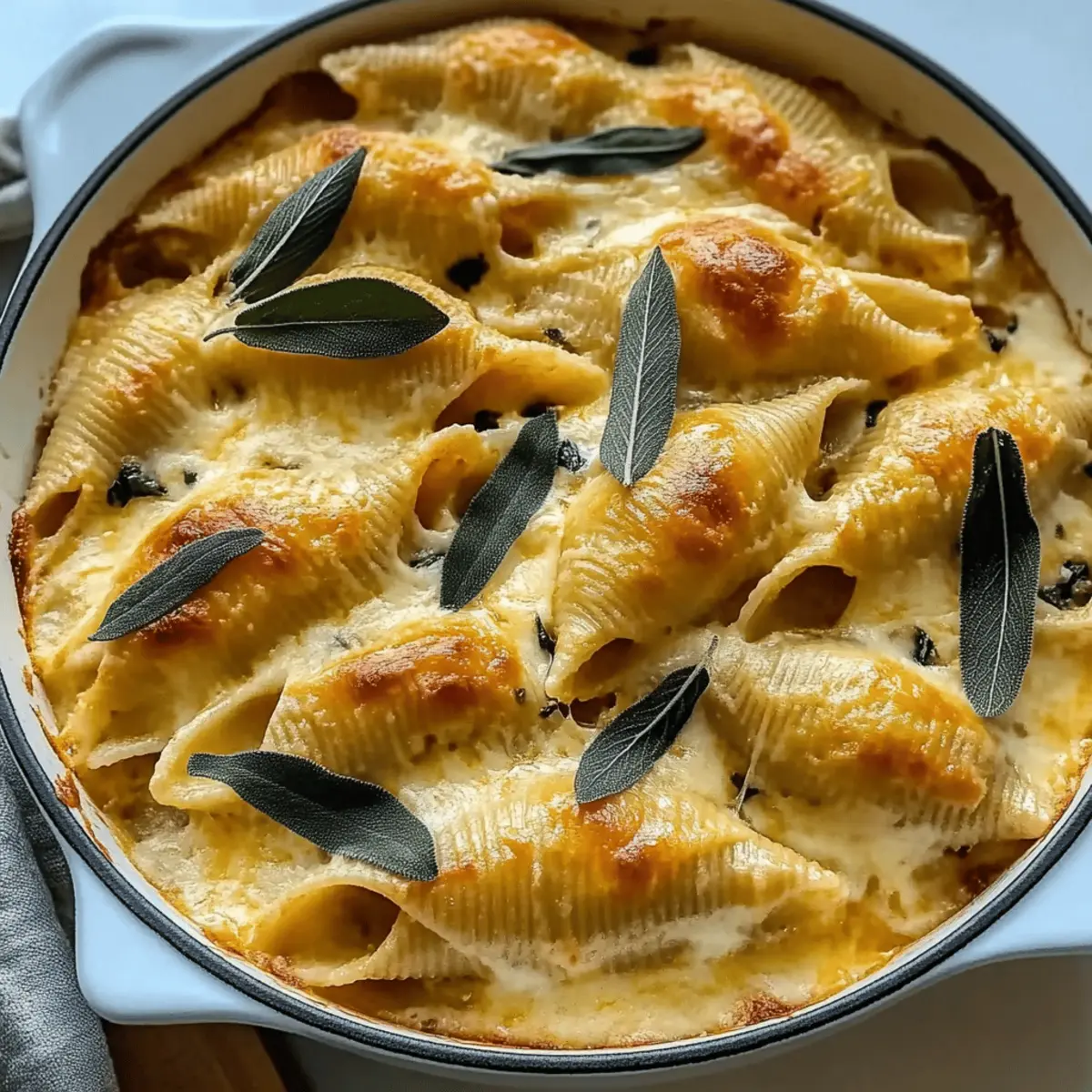 Comforting Layers: Each bite of these Pumpkin & Gouda Stuffed Shells offers a warm, inviting embrace thanks to the rich brown butter sage Alfredo sauce.
