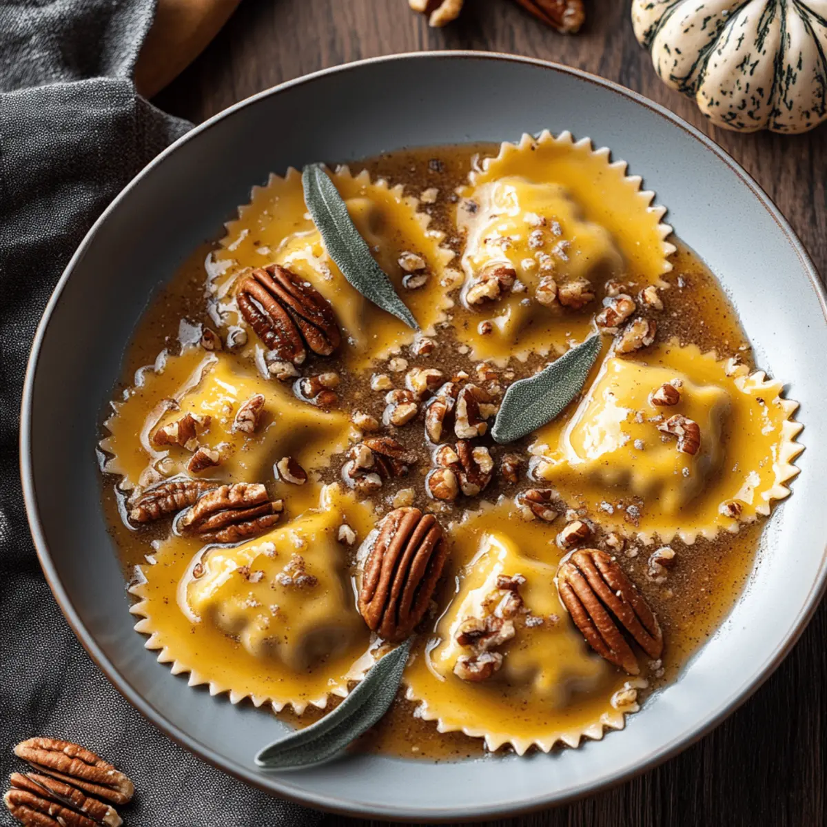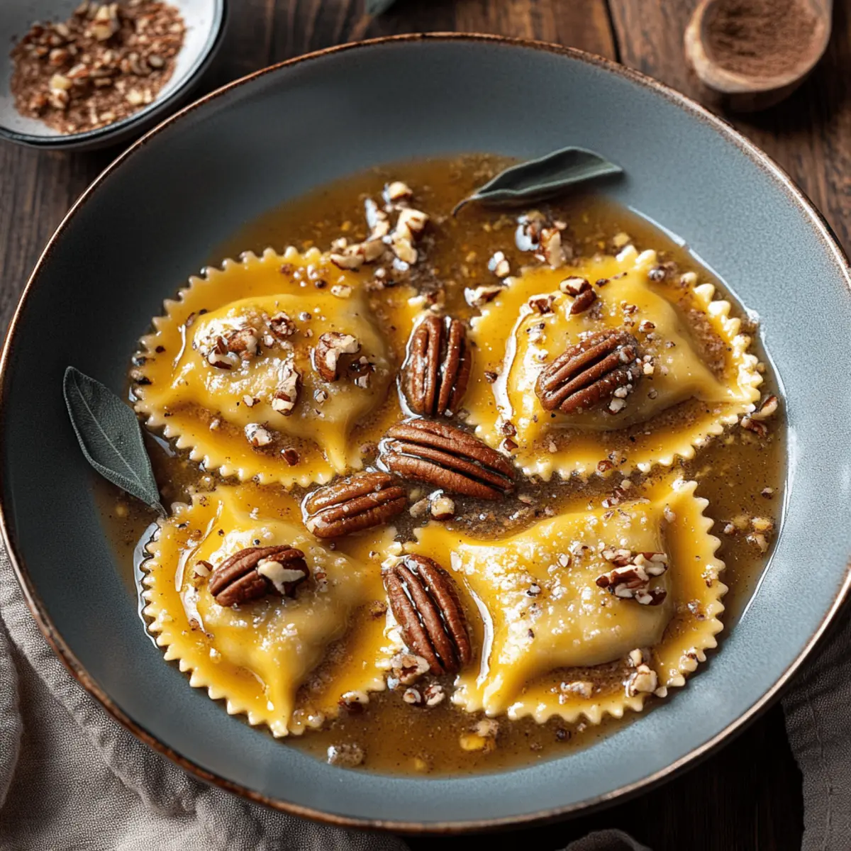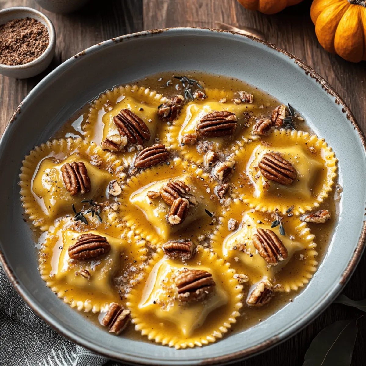 Warm, comforting flavors: The combination of brown butter, cinnamon, and pecans creates an indulgent sauce that complements the ravioli exquisitely—ideal for those chilly evenings.