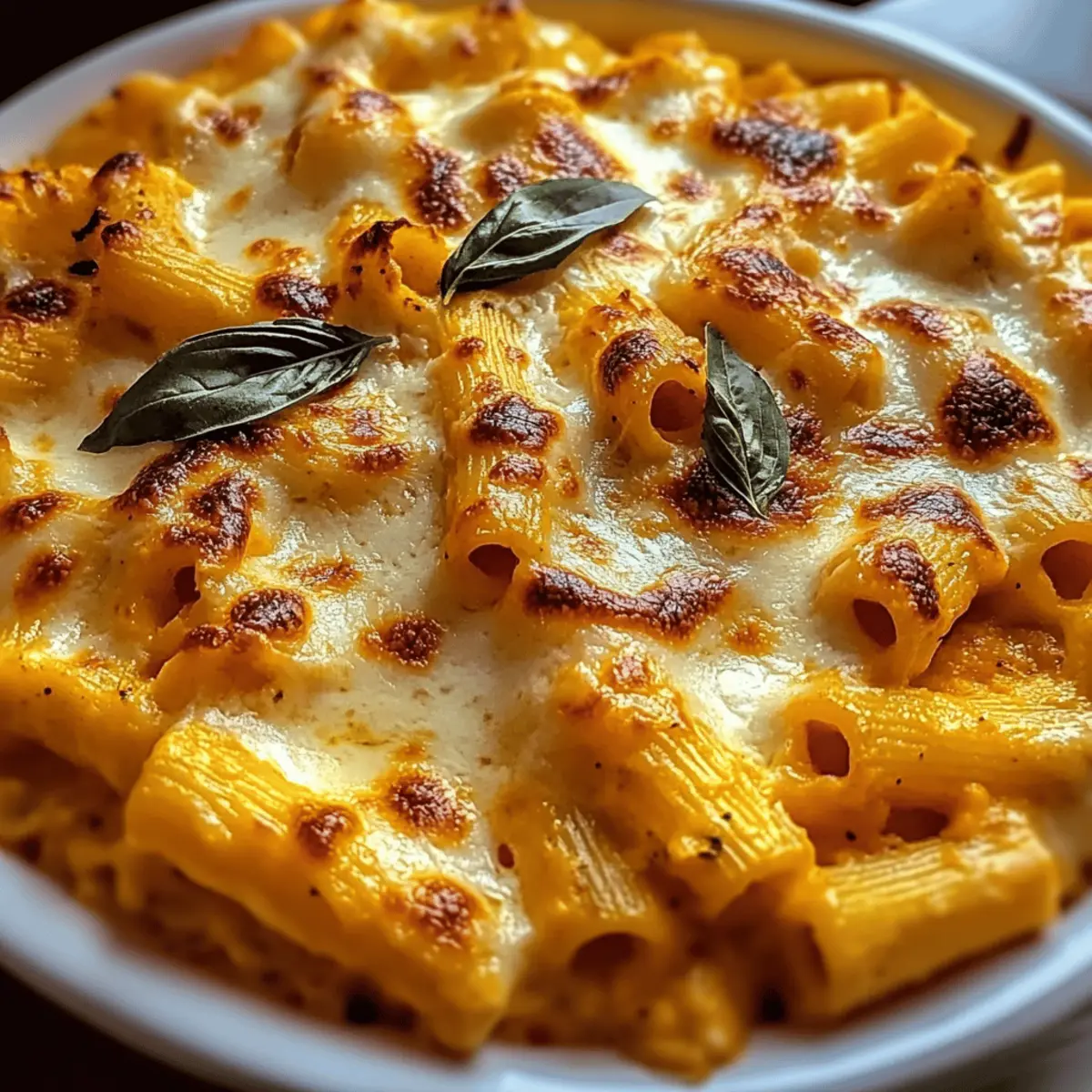 Once baked to perfection, remove the dish from the oven and let it rest for 5-10 minutes. This allows the flavors to meld beautifully. If desired, garnish with fresh basil leaves before serving, adding a final touch of brightness to your Pumpkin Ricotta Baked Pasta.