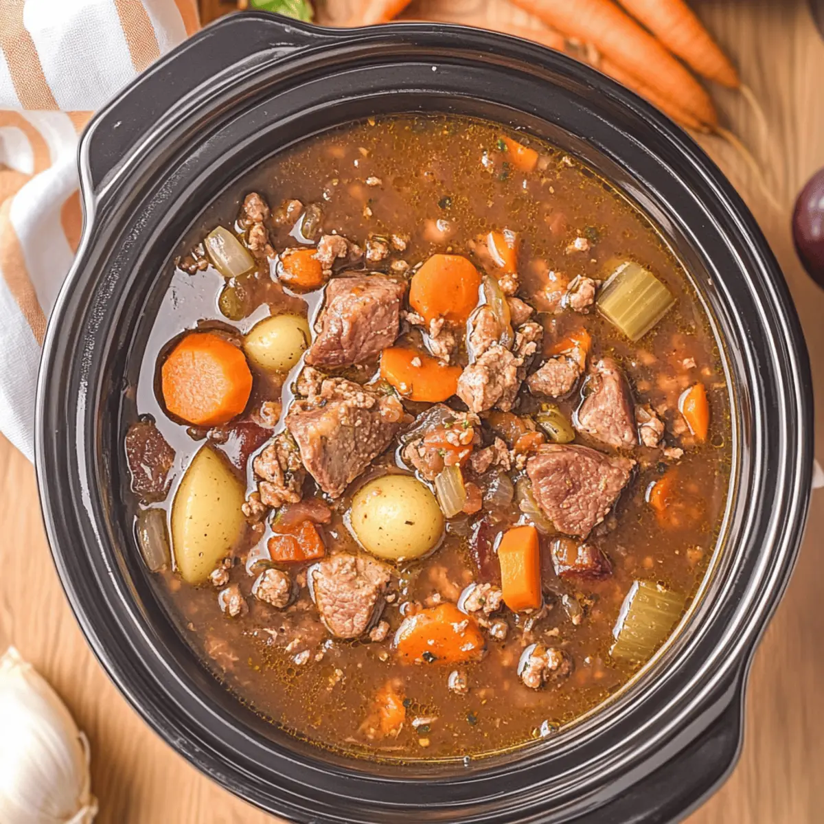 • Onion Soup Mix – A key flavor booster that adds seasoned richness to the stew. Ensure you use a mix without MSG if desired.