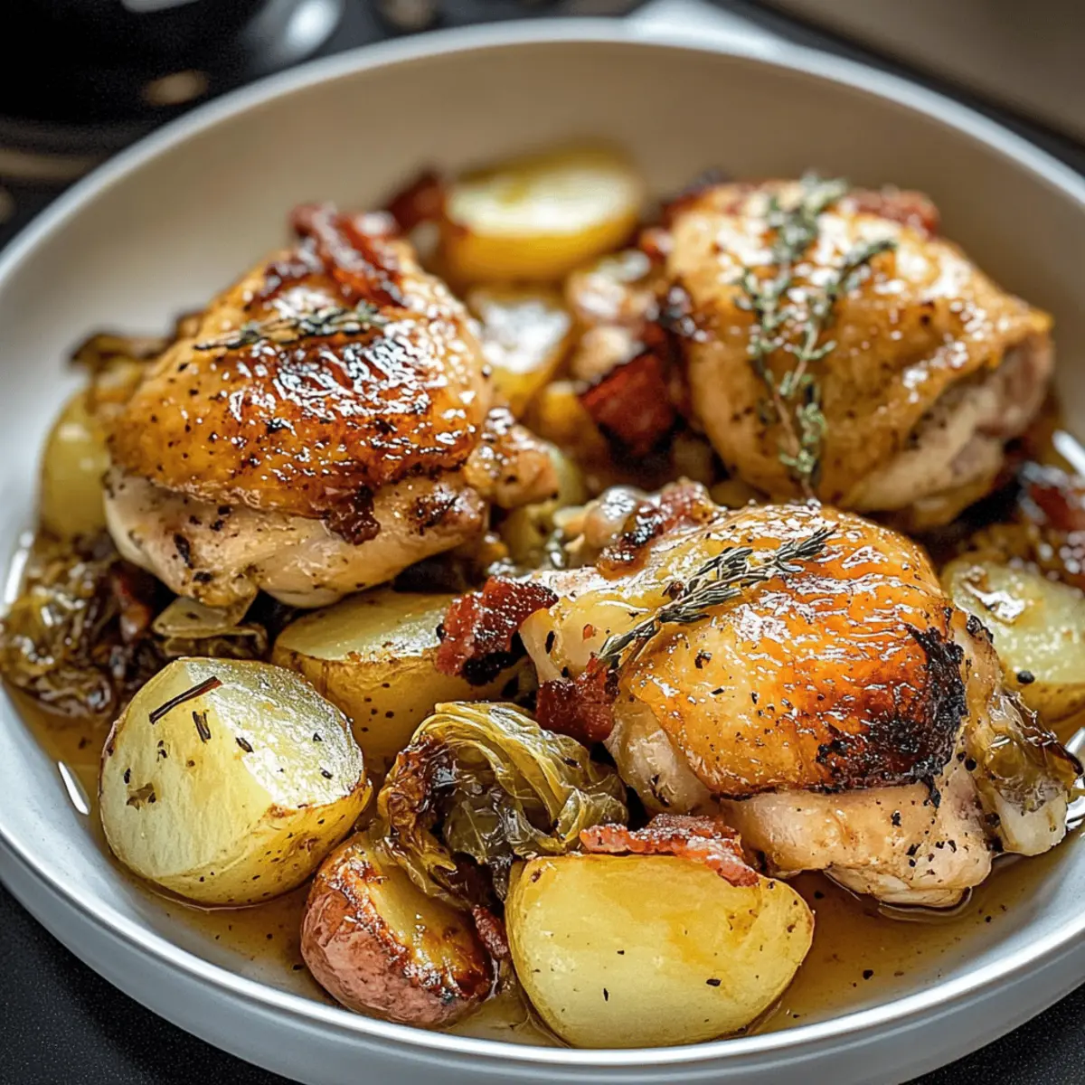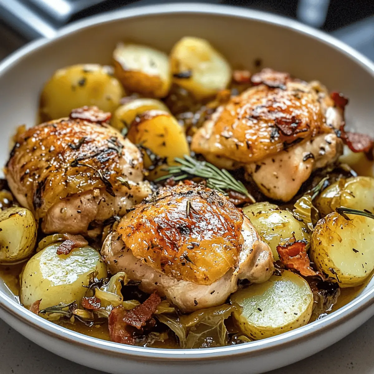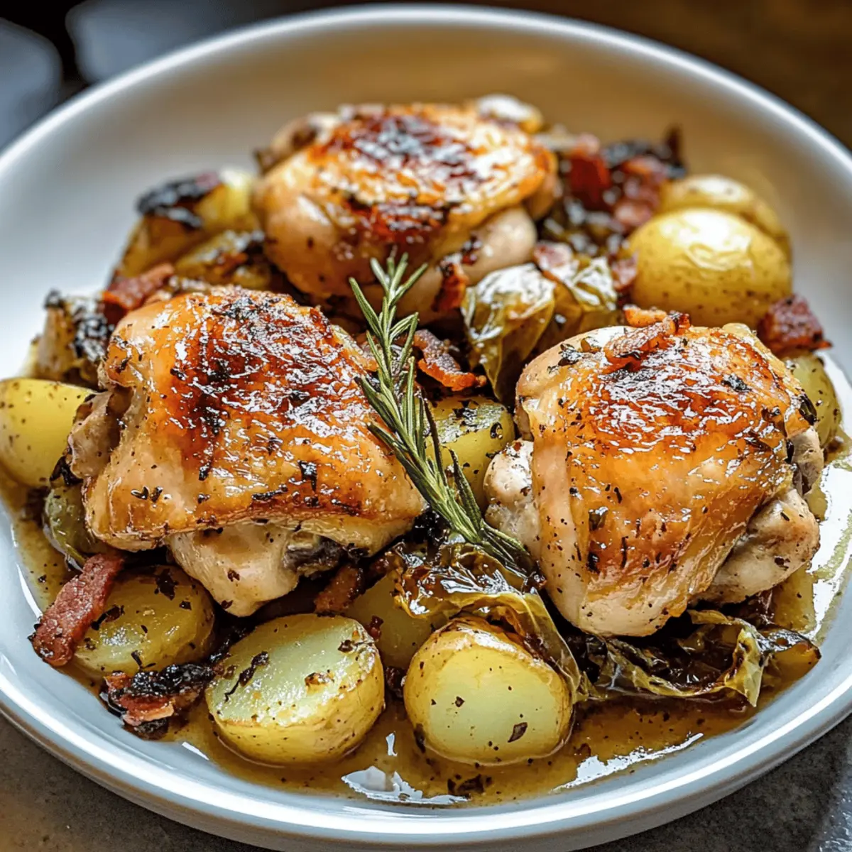 Heartwarming Flavors: The combination of tender chicken, crispy bacon, and caramelized vegetables creates a comforting, savory dish that warms the soul, perfect for chilly evenings.