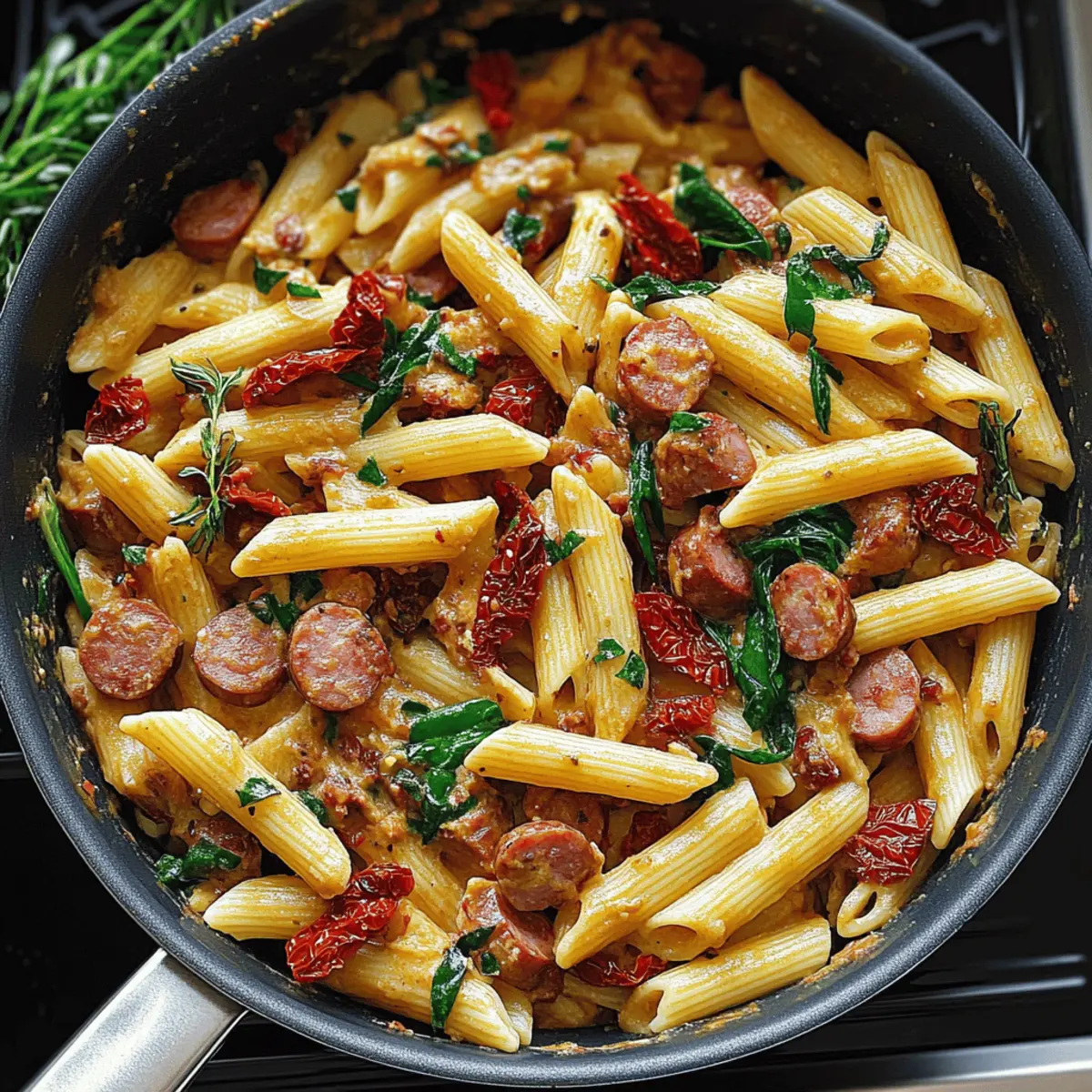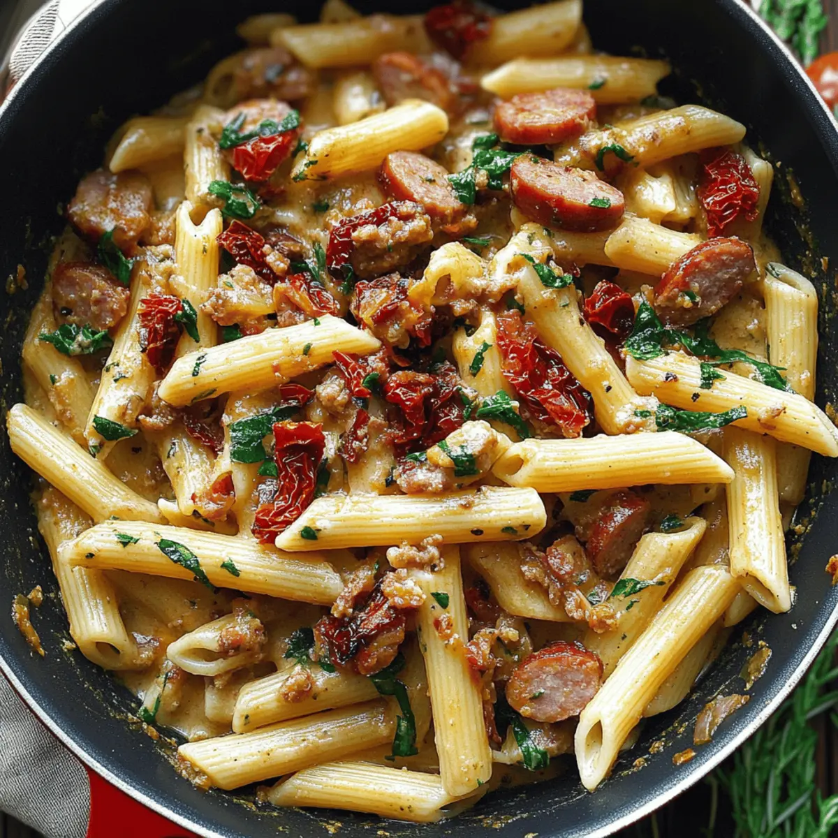 Creamy Pasta with Sun-Dried Tomato Sauce & Sausage Delight