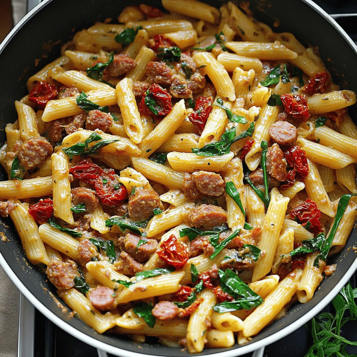 Make It Your Own: Feel free to add veggies like spinach or bell peppers for added nutrition and color. Personalizing your pasta with sun-dried tomato sauce & sausage makes it even more delightful!