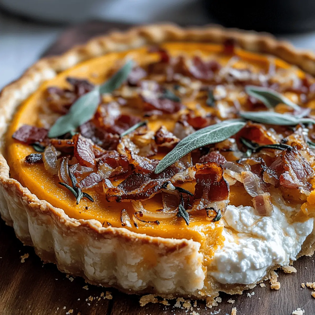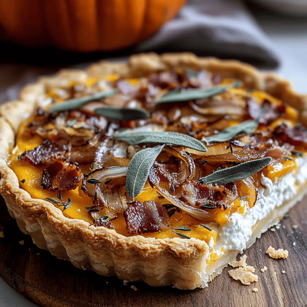 Pumpkin, Ricotta & Caramelized Onion Tart with Bacon and Sage Bliss