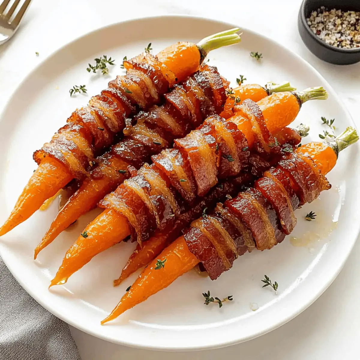 Slide the baking sheet into the preheated oven and let the carrots bake for 25 to 30 minutes. During this time, the bacon will become beautifully crispy, and the carrots should soften. To check doneness, insert a toothpick into a carrot; it should glide through with ease while the bacon appears golden.