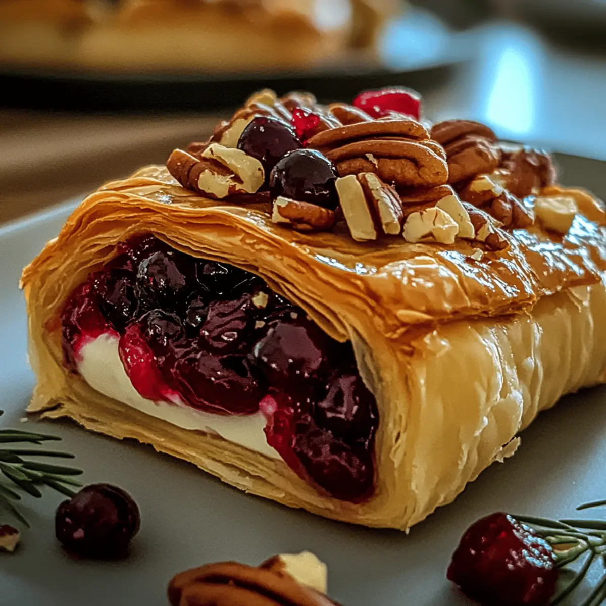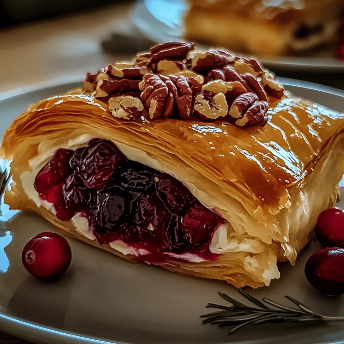 Elegant Presentation: The golden, flaky puff pastry wraps around melty Brie and tangy cranberries, creating an eye-catching centerpiece for any festive gathering!