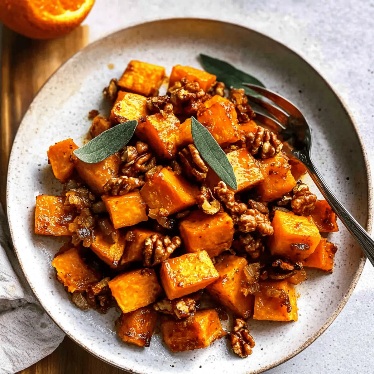 Fall Comfort: This Roasted Butternut Squash with Candied Walnuts brings the warmth of autumn right to your dinner table.