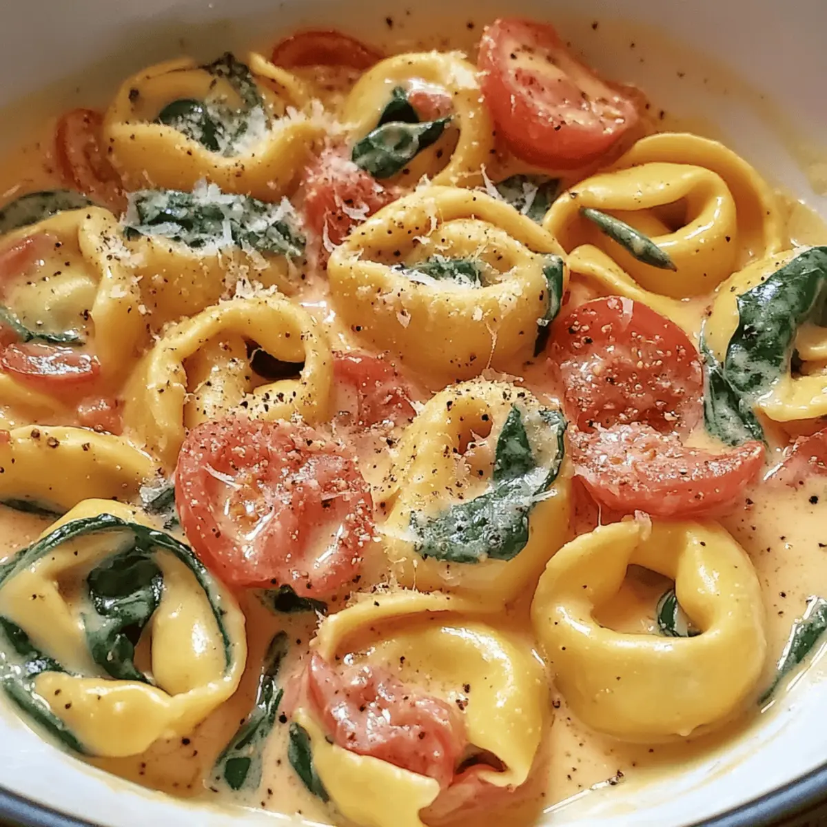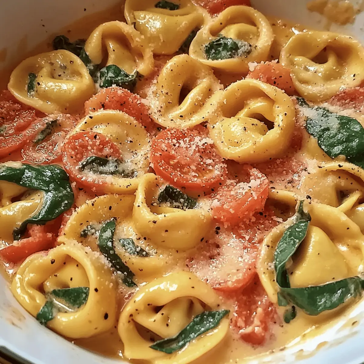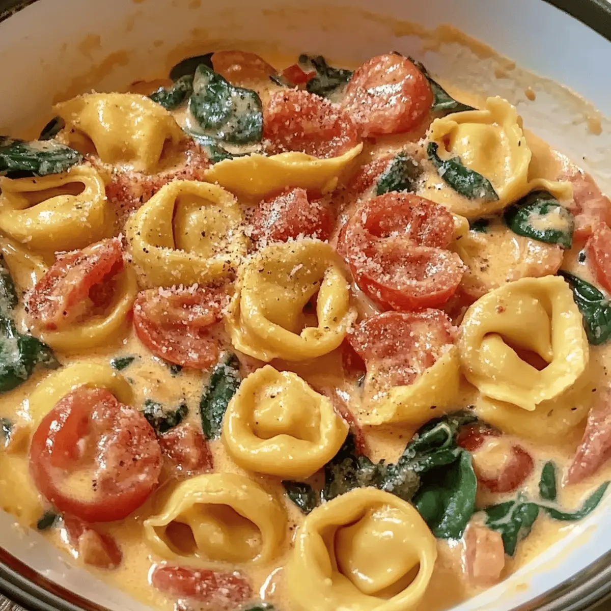 - Fold in the tortellini and spinach, stirring gently to coat and let the spinach wilt slightly.