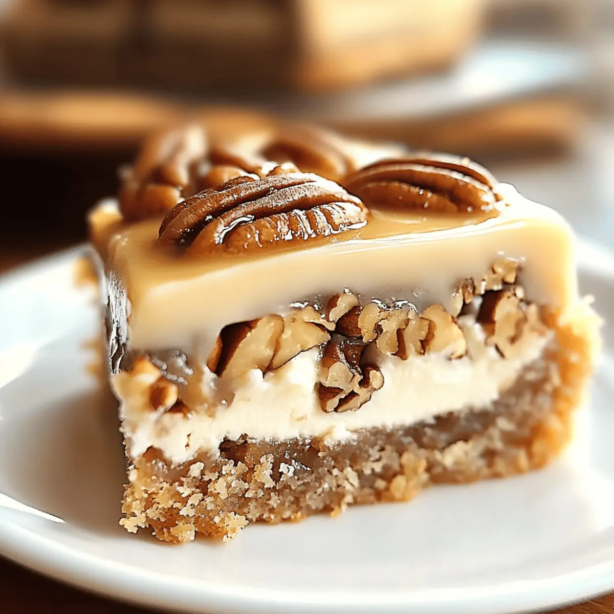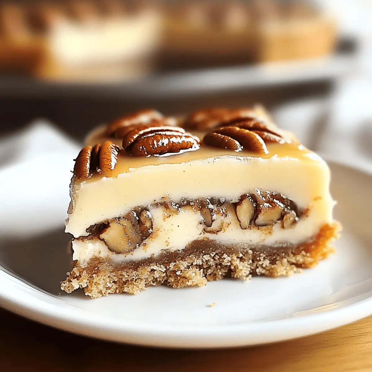 Rich, Creamy Texture: The cheesecake-like center is perfectly balanced with a crunchy pecan topping, creating a delightful contrast that keeps each slice interesting.
