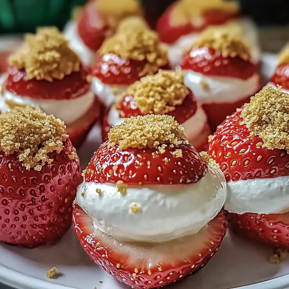 Savor the Cheesecake Strawberries Creamy Delight, a simple yet elegant dessert featuring creamy cheesecake filling in fresh strawberries.
