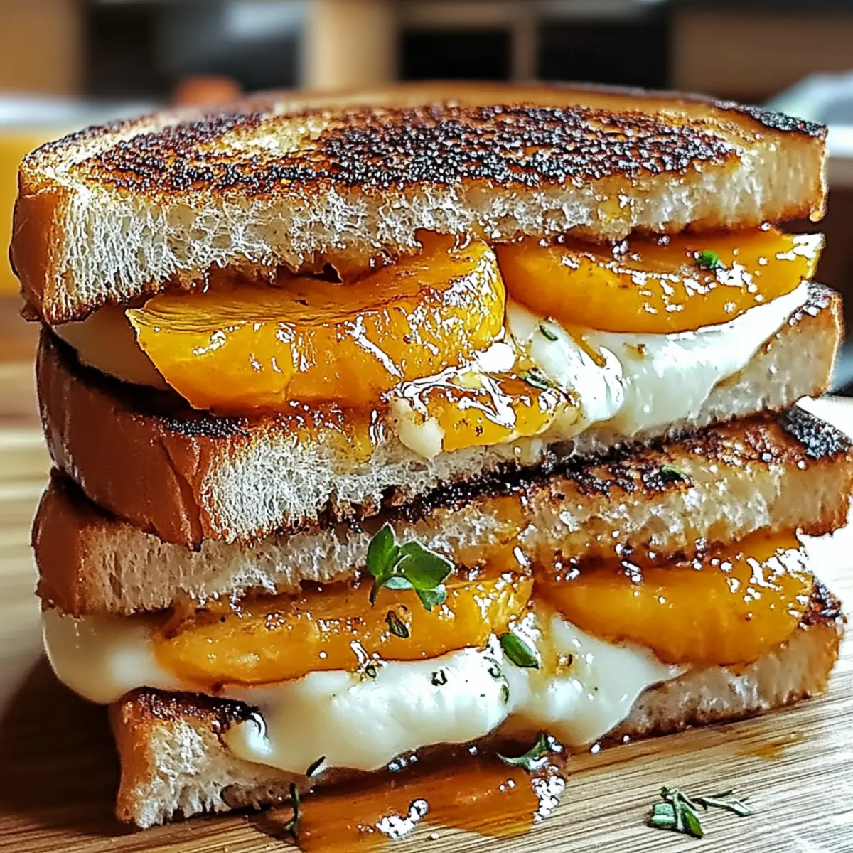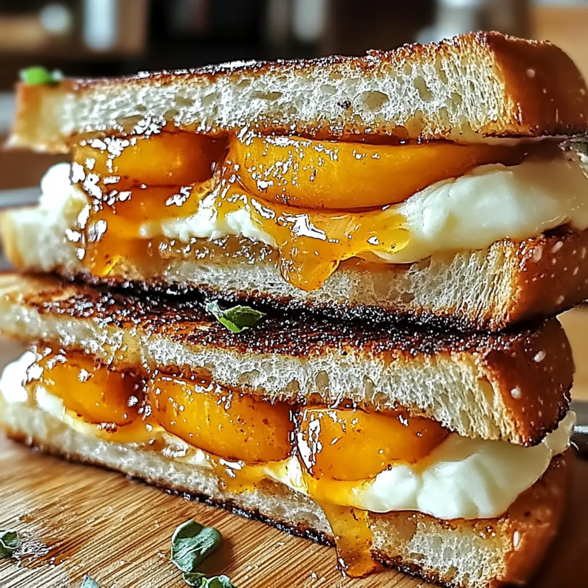 These Caramelized Peach & Brie Grilled Sandwiches combine sweet peaches and creamy Brie for a delightful dish.