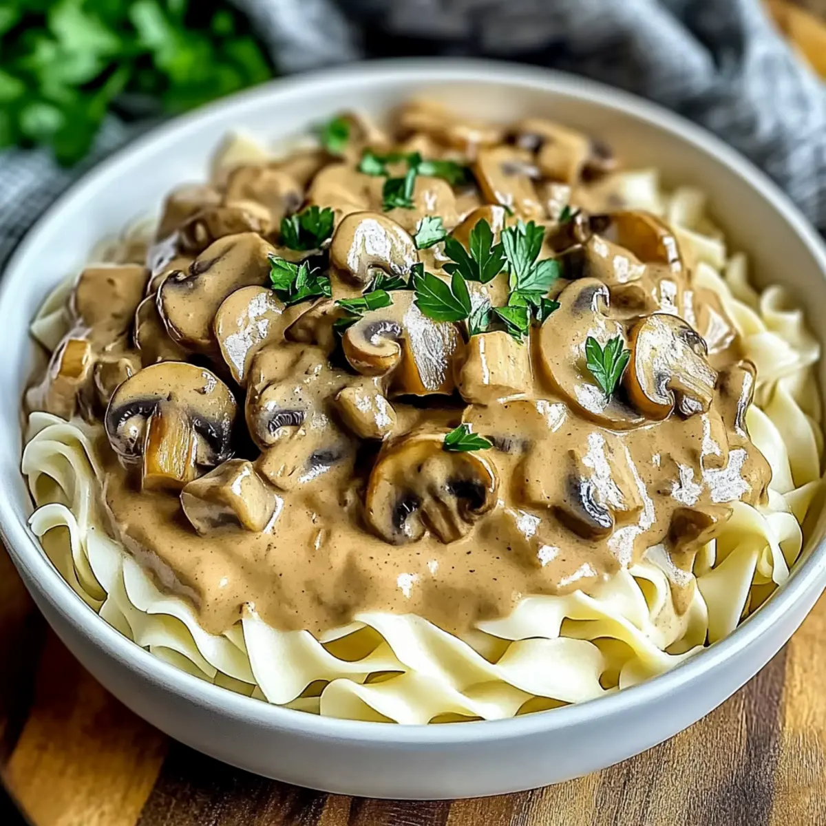 - Combine noodles with stroganoff sauce or serve separately. Garnish with fresh parsley.