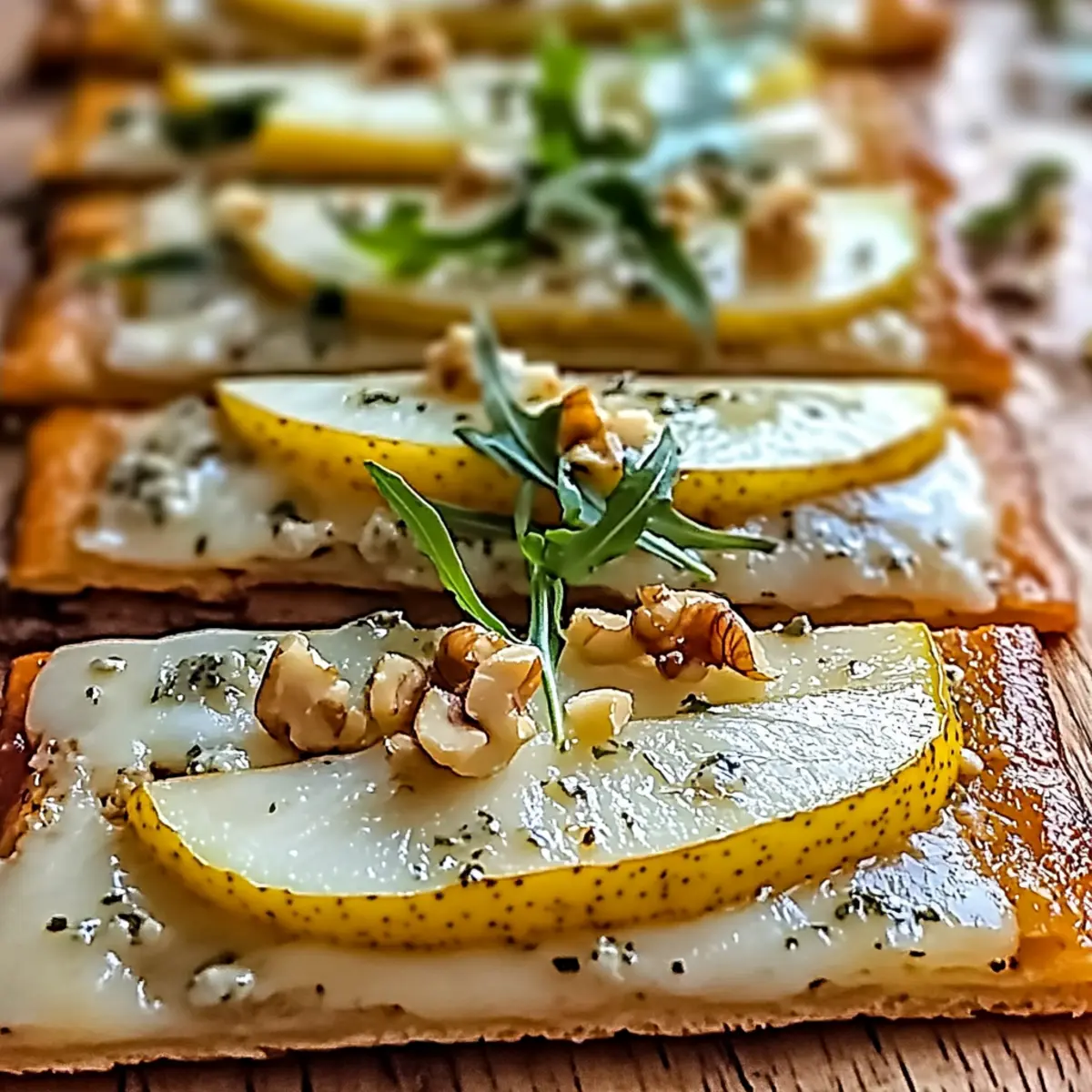 This Cozy Pear & Gorgonzola Flatbread combines juicy pears and creamy Gorgonzola for a sophisticated appetizer.