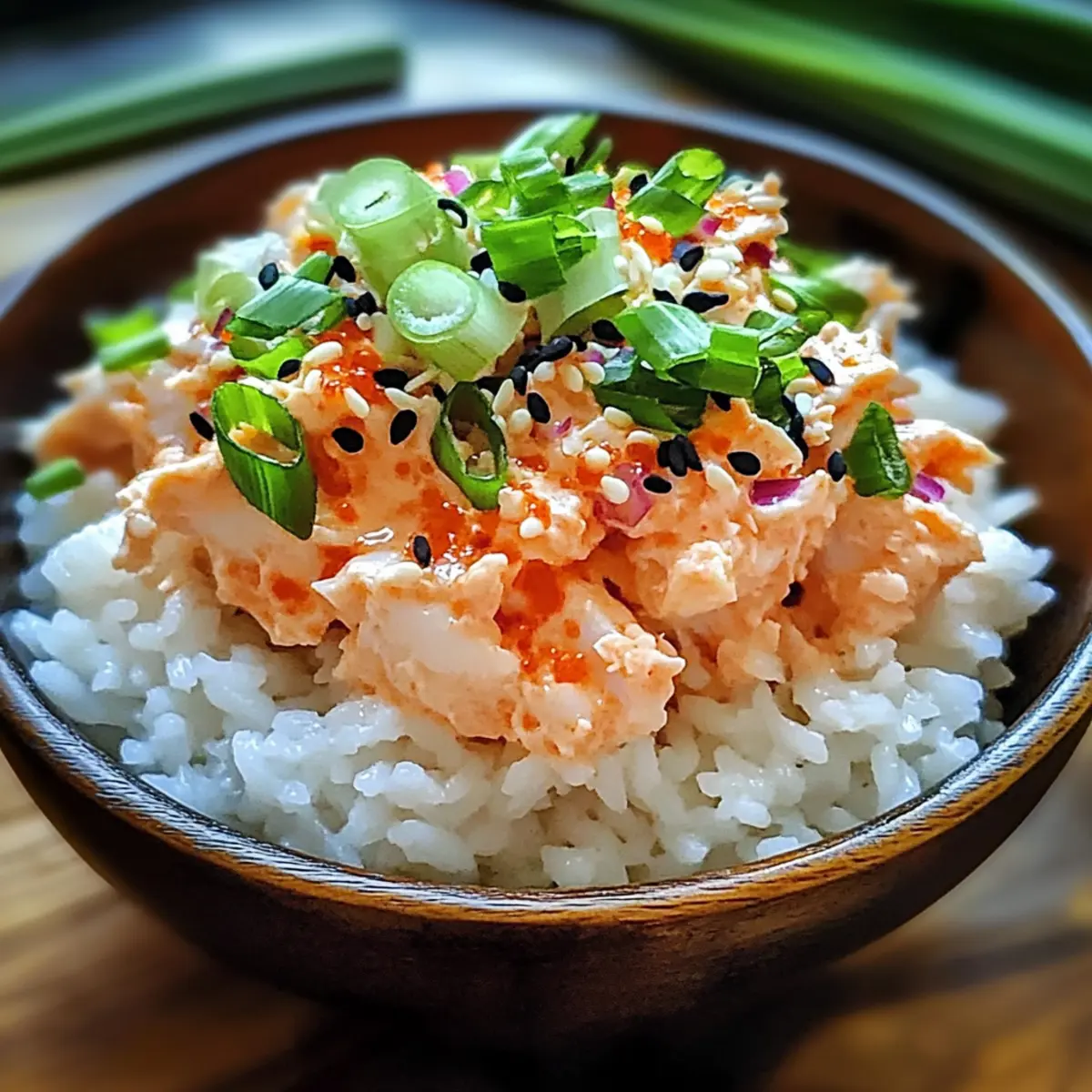 Sprinkle sesame seeds and thinly sliced green onions generously over the top of each bowl, adding a delightful crunch and burst of freshness. These garnishes enhance both the visual appeal and the flavors of your Easy Spicy Crab Sushi Bowls, making each bowl a feast for the eyes and the palate.