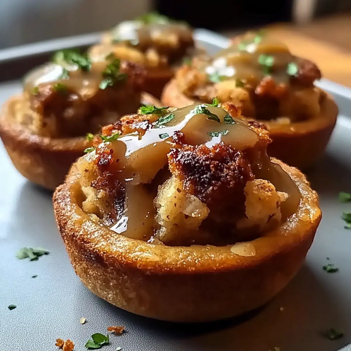 Muffin Tin Turkey & Stuffing Cups With Gravy