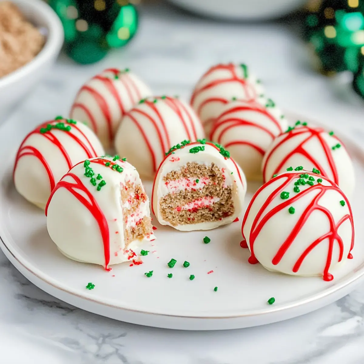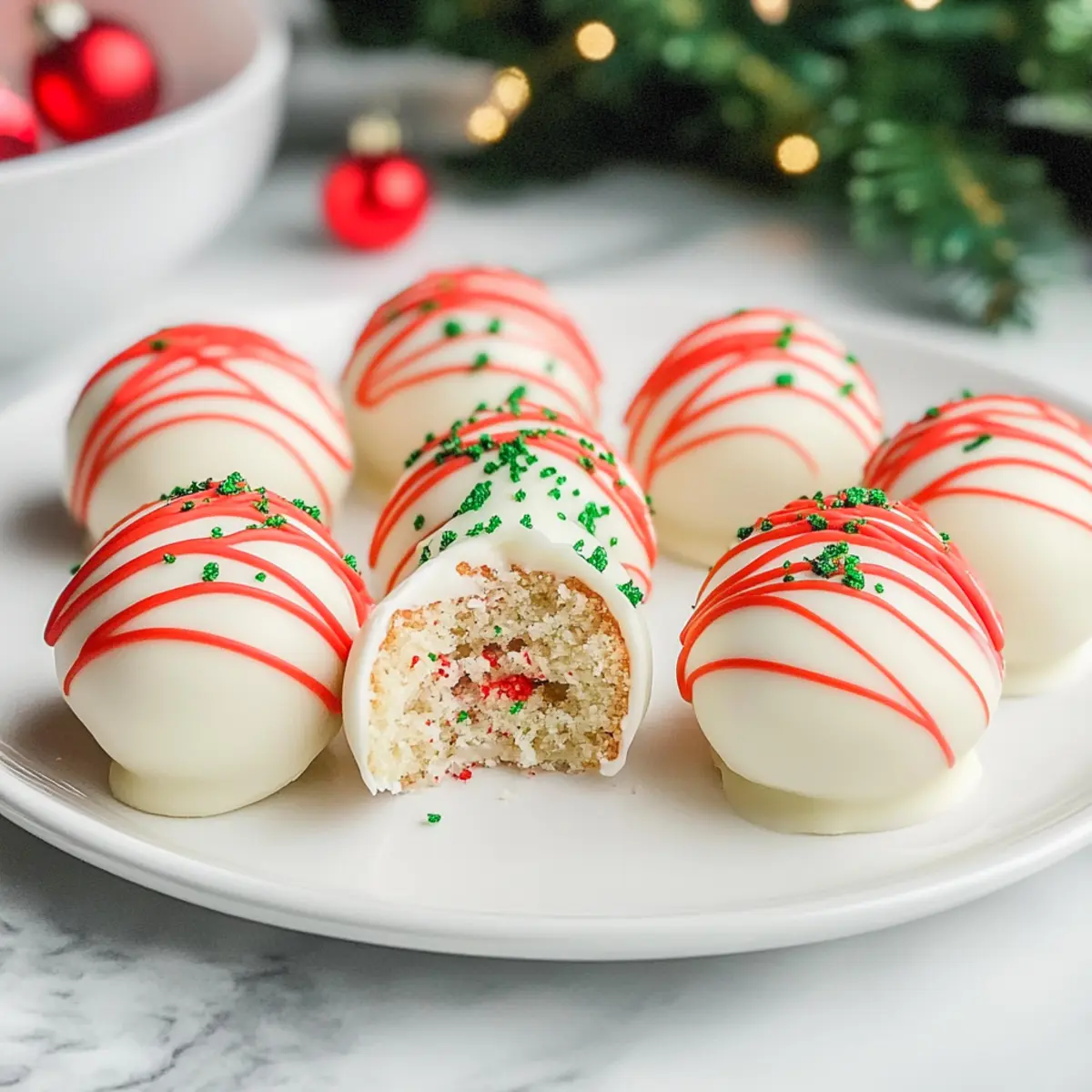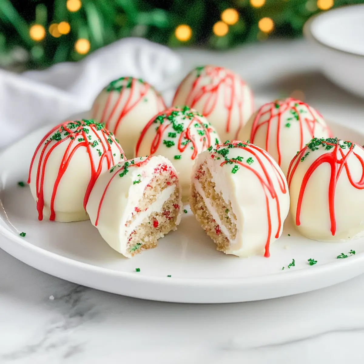 Irresistible Flavor: These Christmas Tree Cake Truffles blend nostalgic flavors, making them a crowd-pleaser at any festive gathering. No-Bake Delight: Quick and easy to prepare, you won’t spend hours in the kitchen! Versatile Creativity: Customize with different cake flavors or toppings for a personalized touch, just like our beloved Pumpkin Spice Cake or festive Raspberry Chocolate Truffles. Perfect for Gifting: These truffles are great for sharing—package them up for friends and family. Memorable Texture: Enjoy the creamy center wrapped in a crunchy white chocolate coating, a treat your taste buds will thank you for!