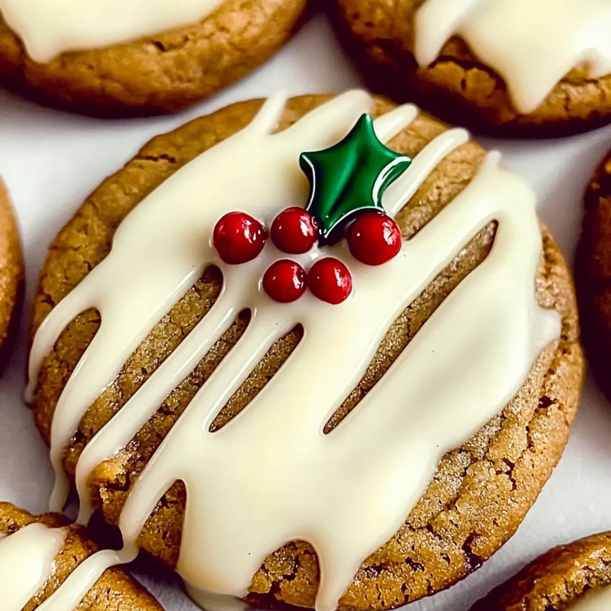 Once the cookies have cooled completely, dip half of each cookie into the melted white chocolate, allowing any excess to drip off. For an extra touch, drizzle more melted chocolate over the top and sprinkle with holly berry sprinkles, if desired. This will add a festive flair and enhance the visual appeal of your Chewy Maple Cinnamon Cookies.