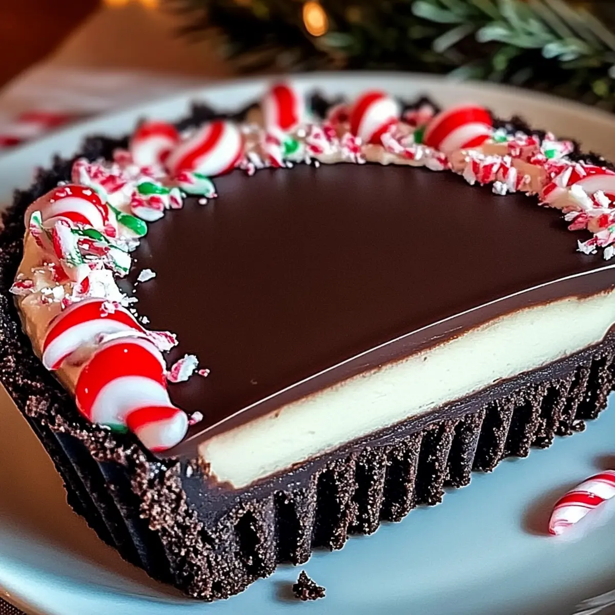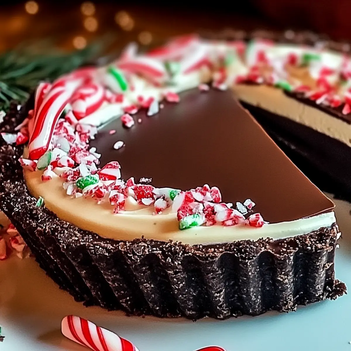 Indulge in a luxurious Dark Chocolate Peppermint Mousse Tart, combining the richness of dark chocolate and refreshing peppermint for a festive treat.