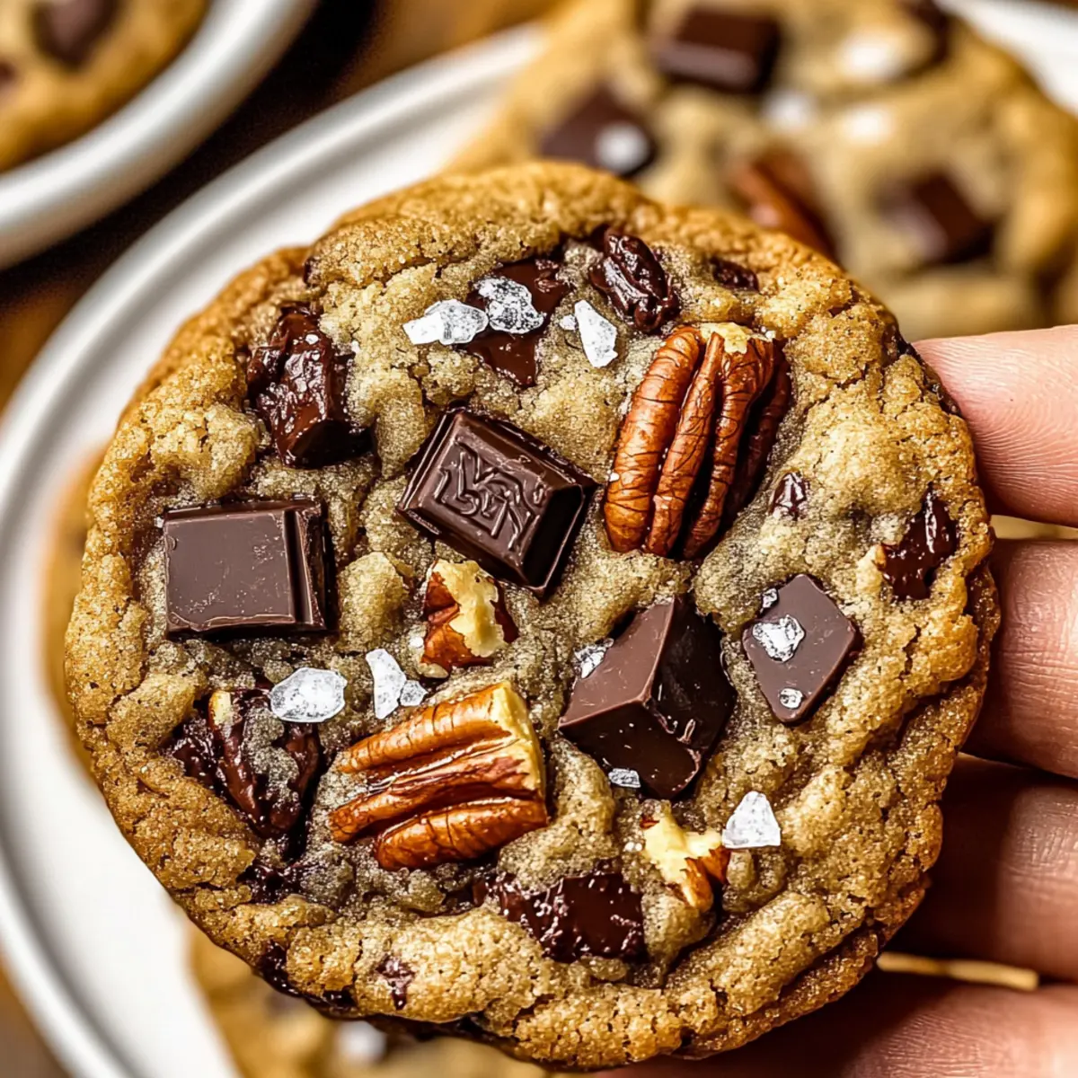 Brown Butter Bourbon Pecan Chocolate Chunk Cookies