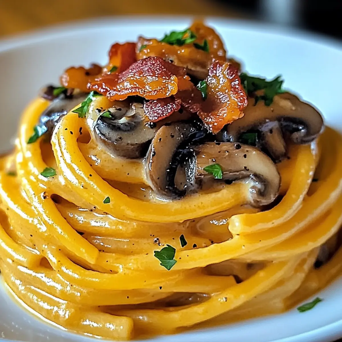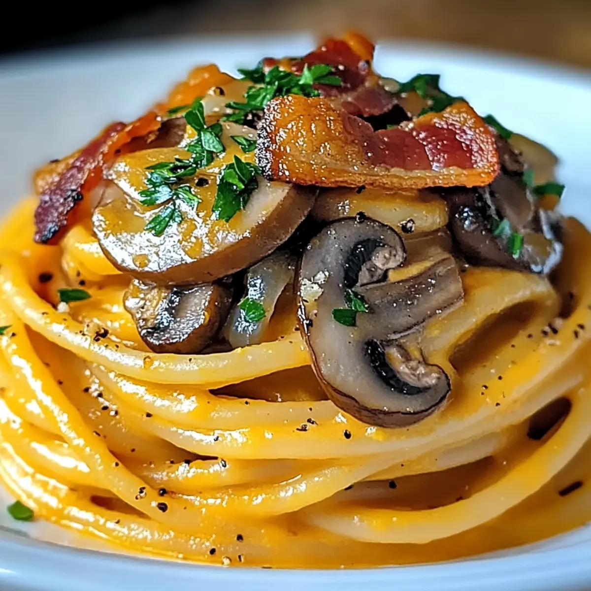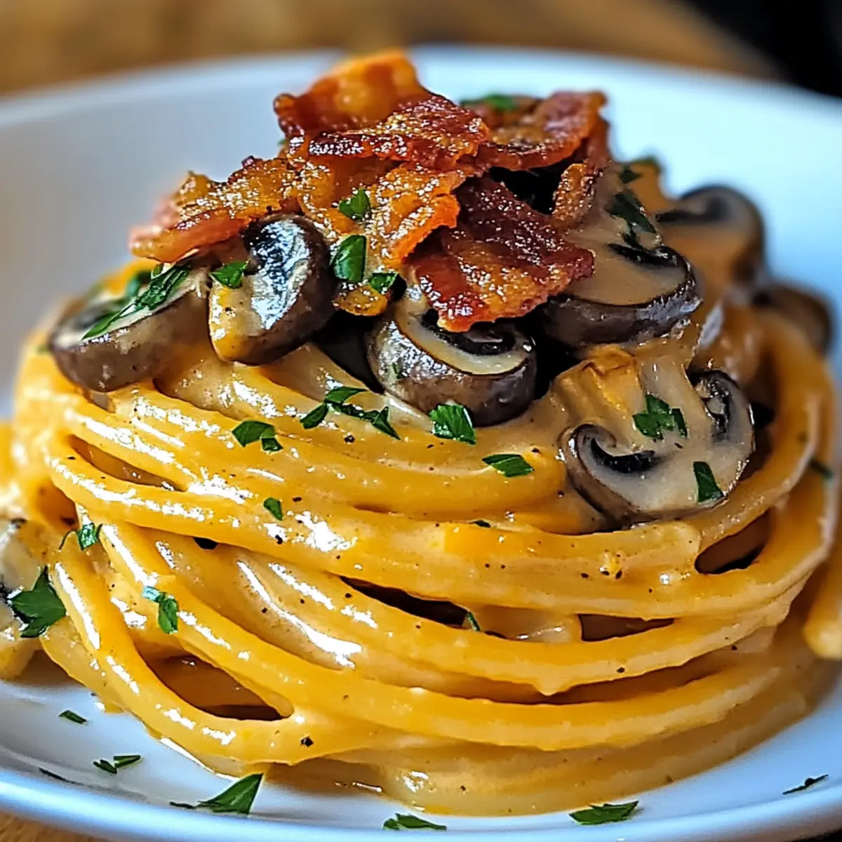 Delicious Pumpkin & Mushroom Spaghetti with Crispy Bacon Bliss
