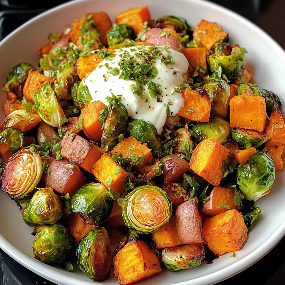 Vibrant Ingredients: The mix of sweet potatoes and Brussels sprouts adds a beautiful array of colors and nutrients to your plate.