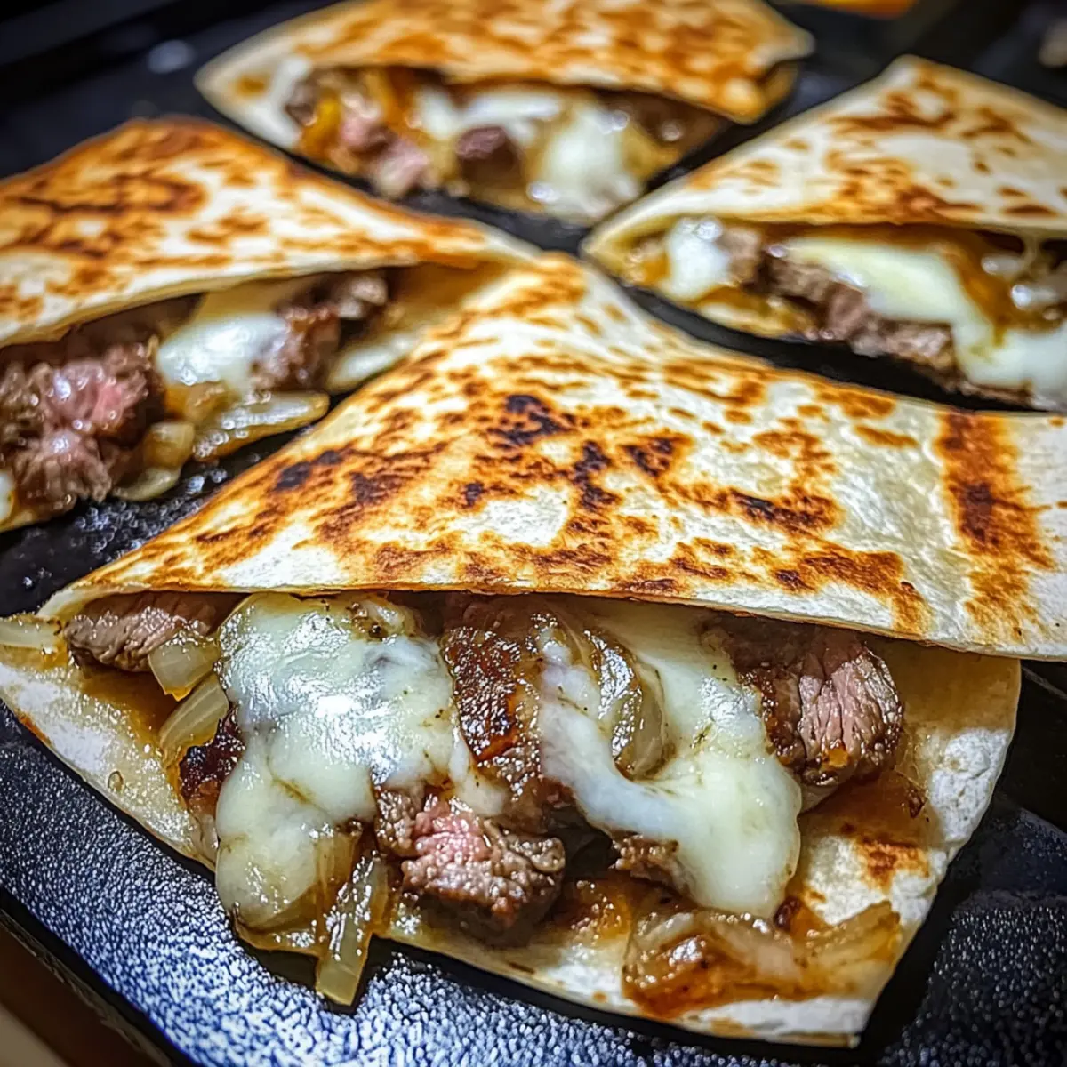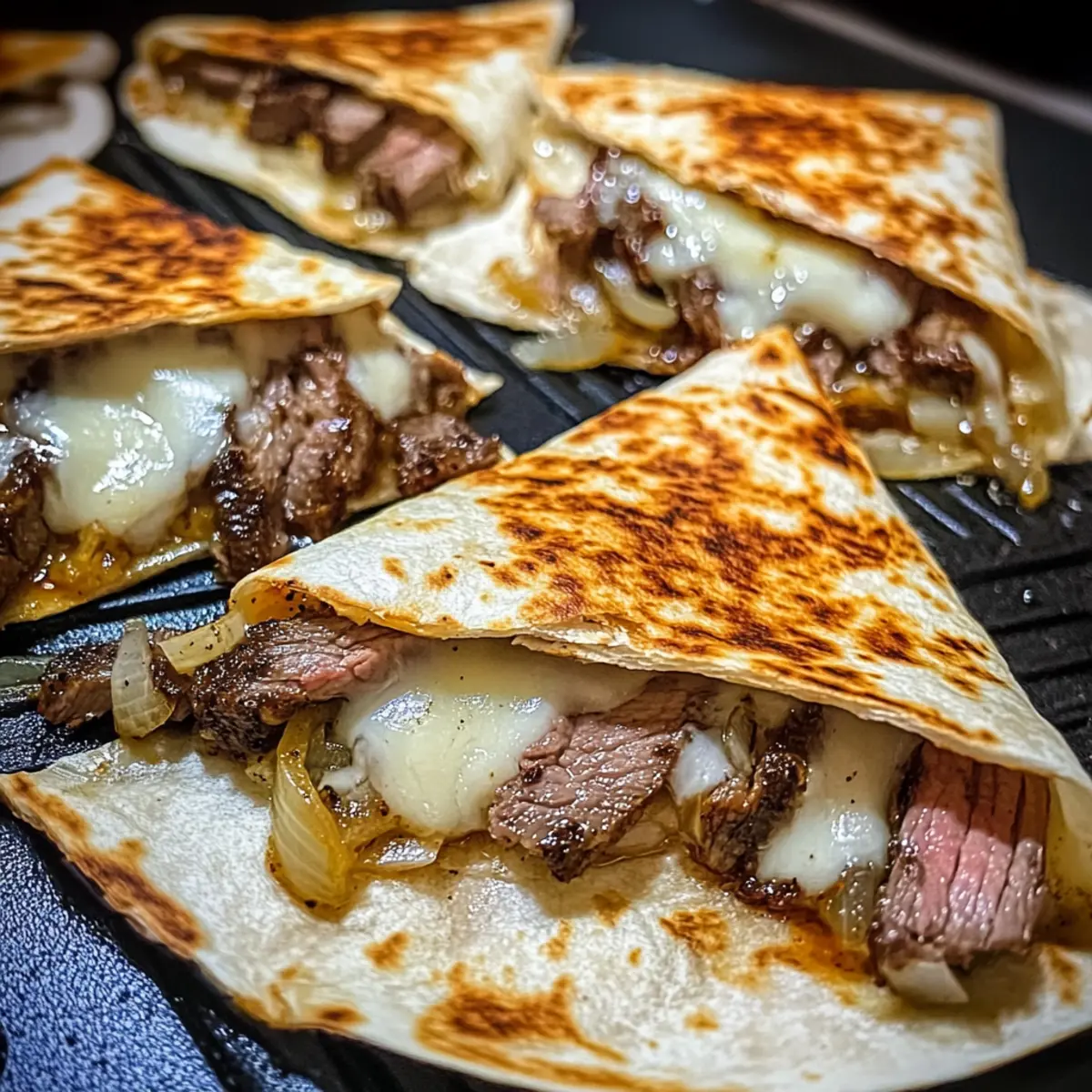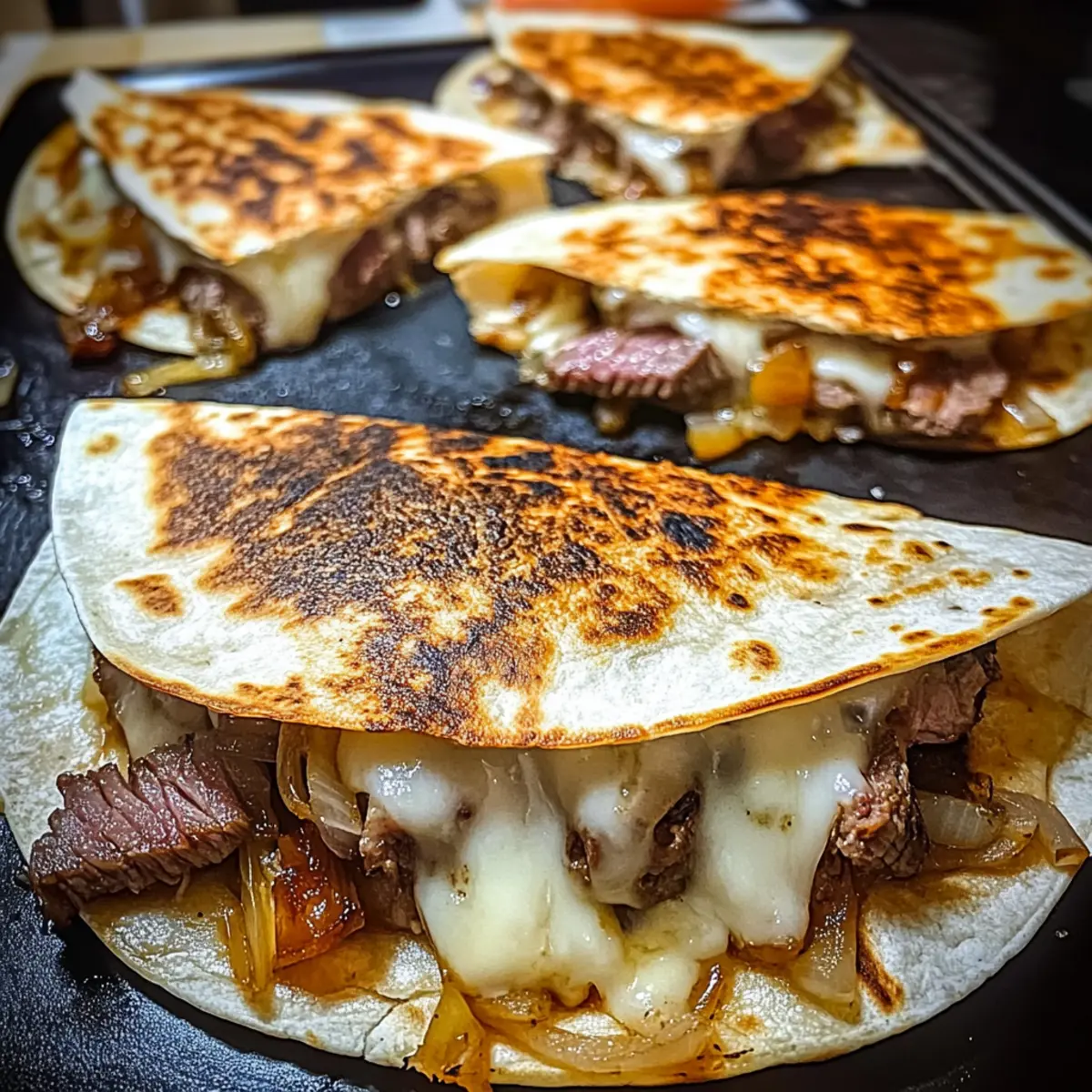 Crispy and Cheesy Goodness: Enjoy the satisfying crunch of grilled tortillas enveloping a melty cheese and steak filling—pure comfort food bliss!