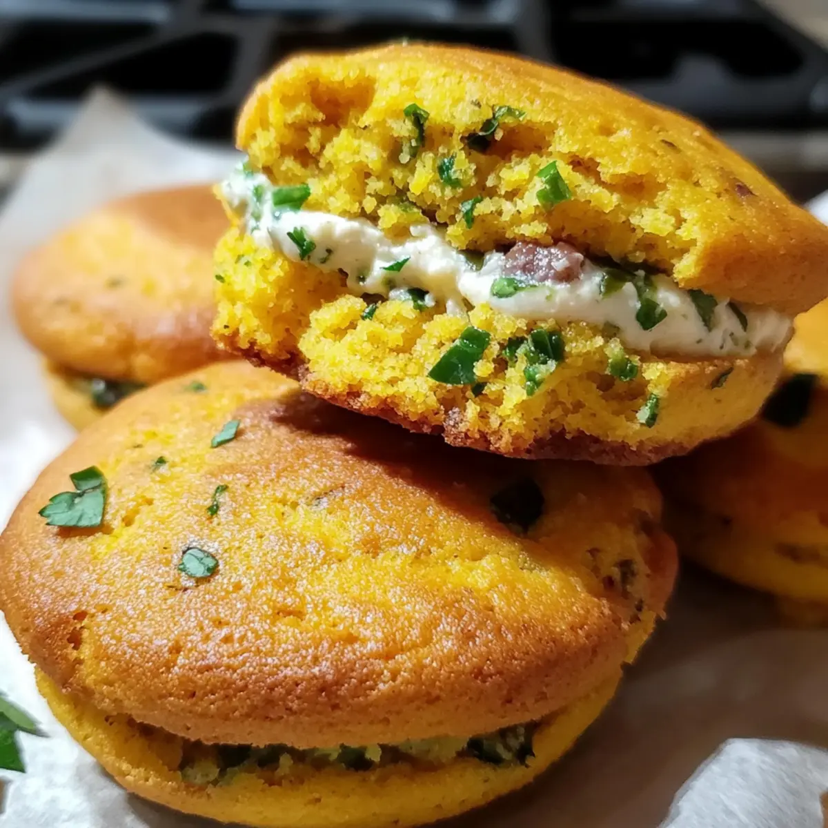 These Jalapeño Cornbread Whoopie Pies offer a delightful contrast of sweet cornbread and spicy filling, perfect for gatherings.