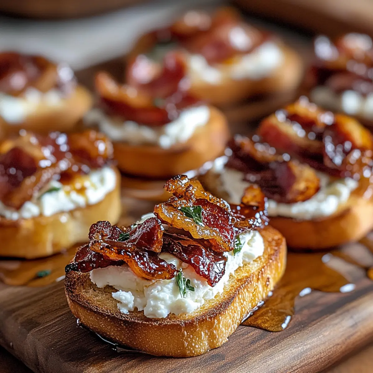 Yes! You can prepare the bacon and toasted baguette slices up to 2 days in advance. Store them separately in airtight containers in the fridge to keep them fresh and crispy. Assembly is a breeze before your gathering—simply spread the goat cheese, add the bacon, and serve with drizzles and garnishes for that wow factor!