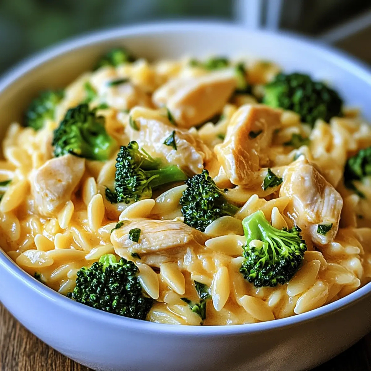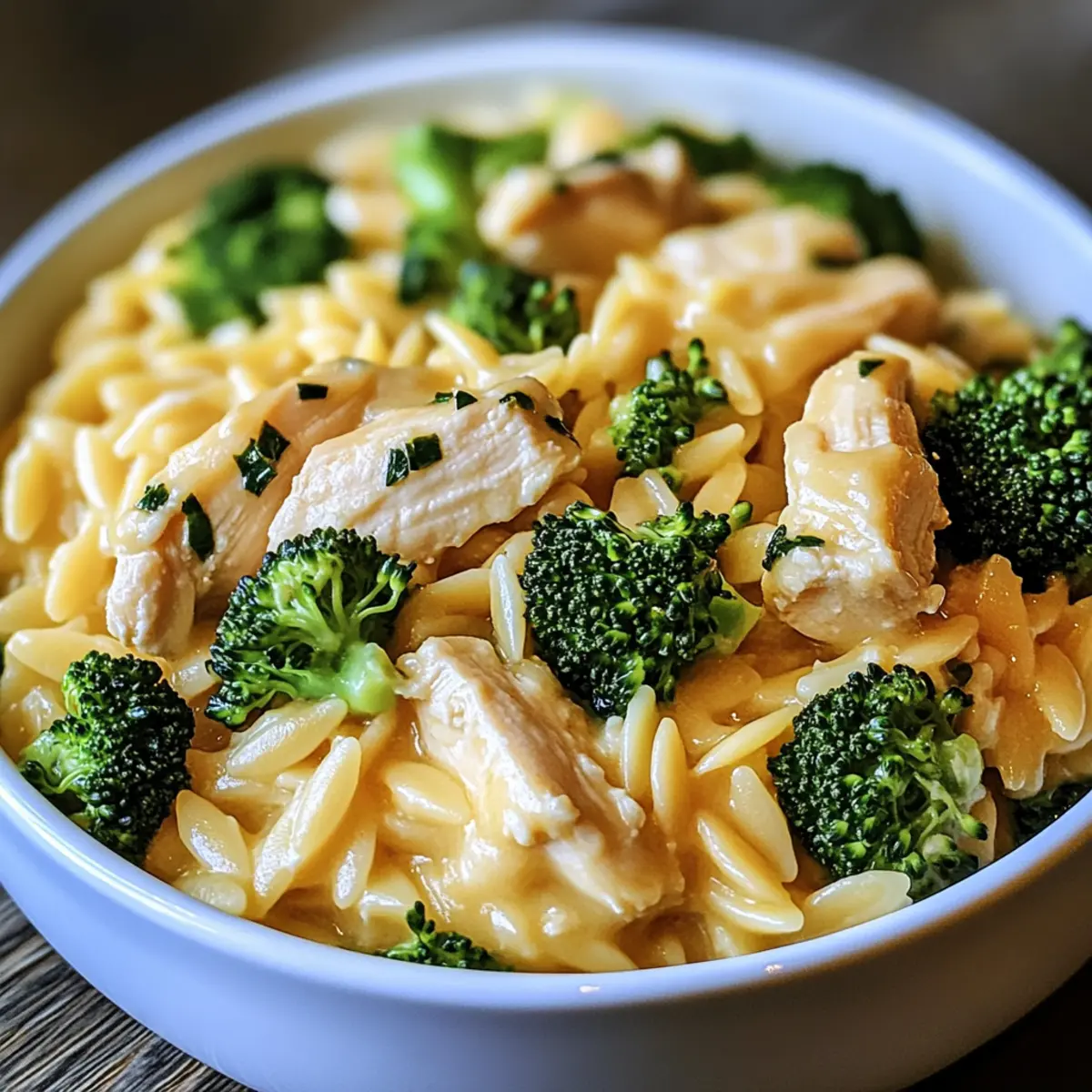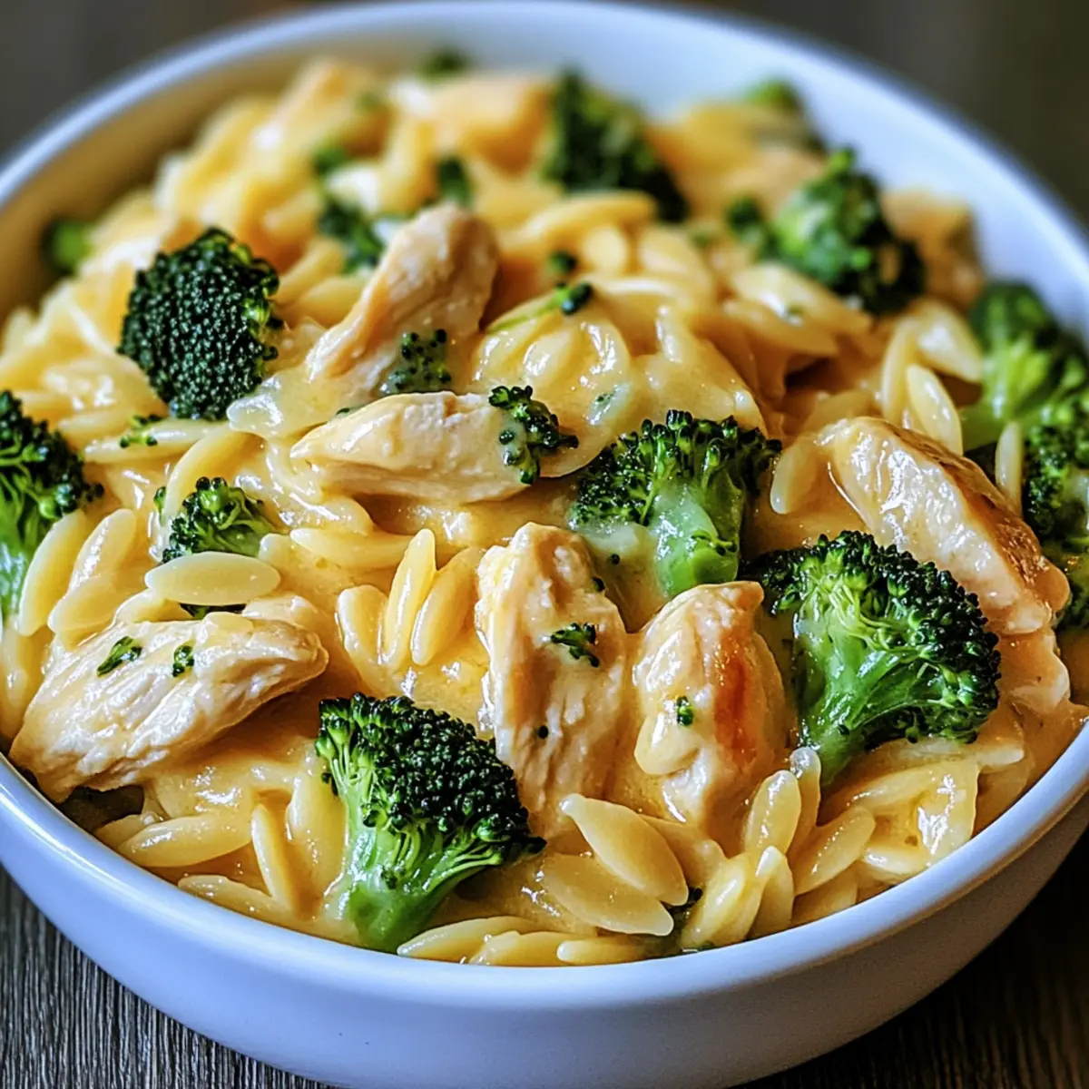 Delightful Cheesy Chicken Broccoli Orzo combines tender chicken, creamy cheddar, and vibrant broccoli for a comforting 30-minute meal.