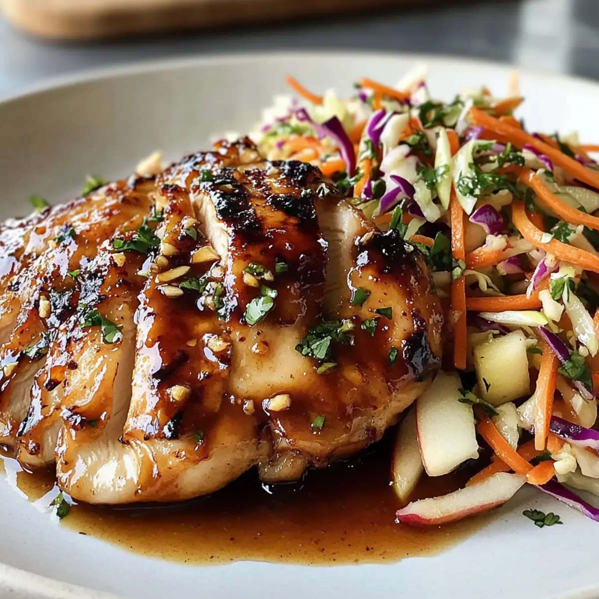 Leftover Storage: Store chicken and slaw separately to preserve textures; the glazed chicken reheats best on the stovetop to keep it tender and juicy.