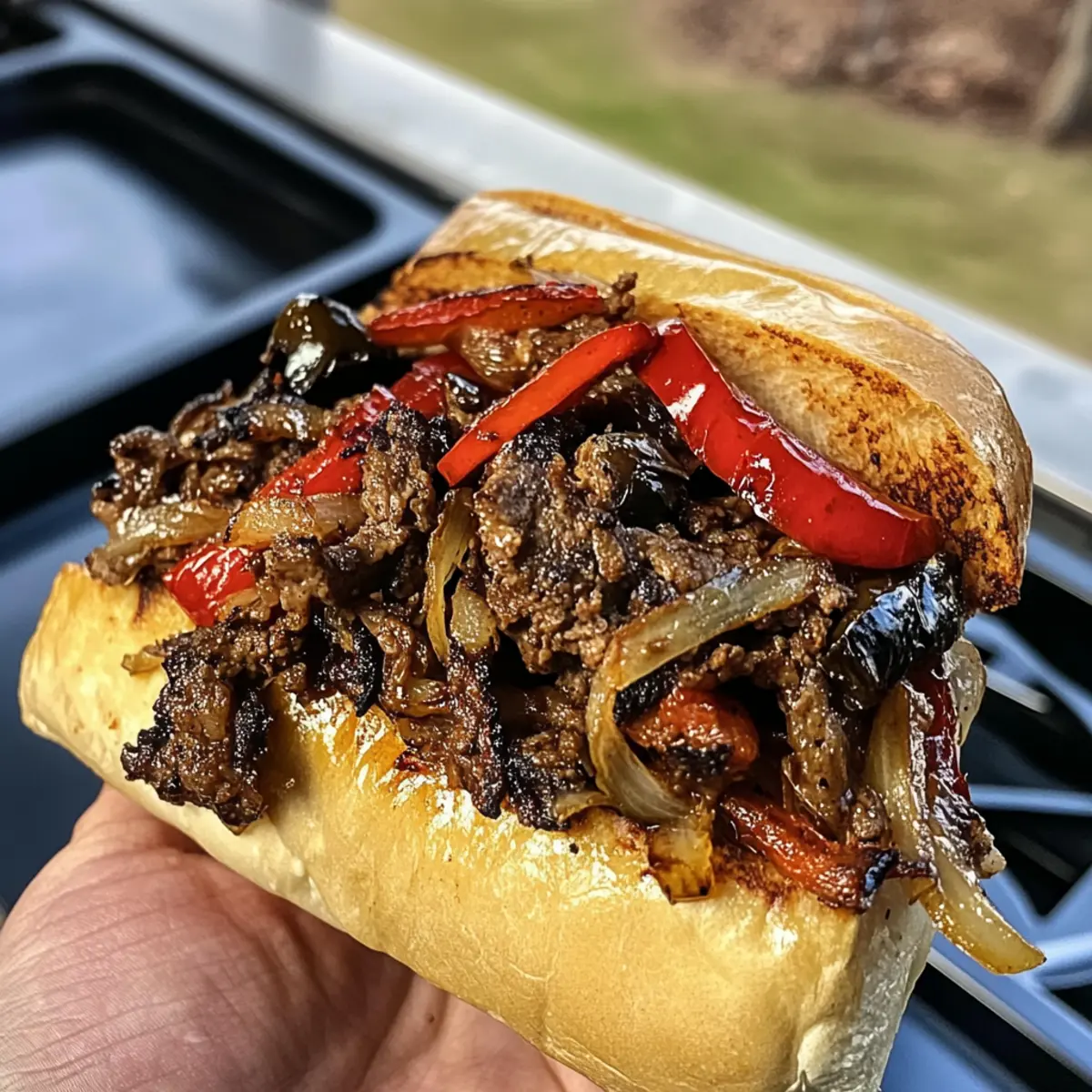 Texture Heaven: Crispy hoagie rolls filled with juicy beef and sautéed peppers offer a delightful crunch and richness in every bite.