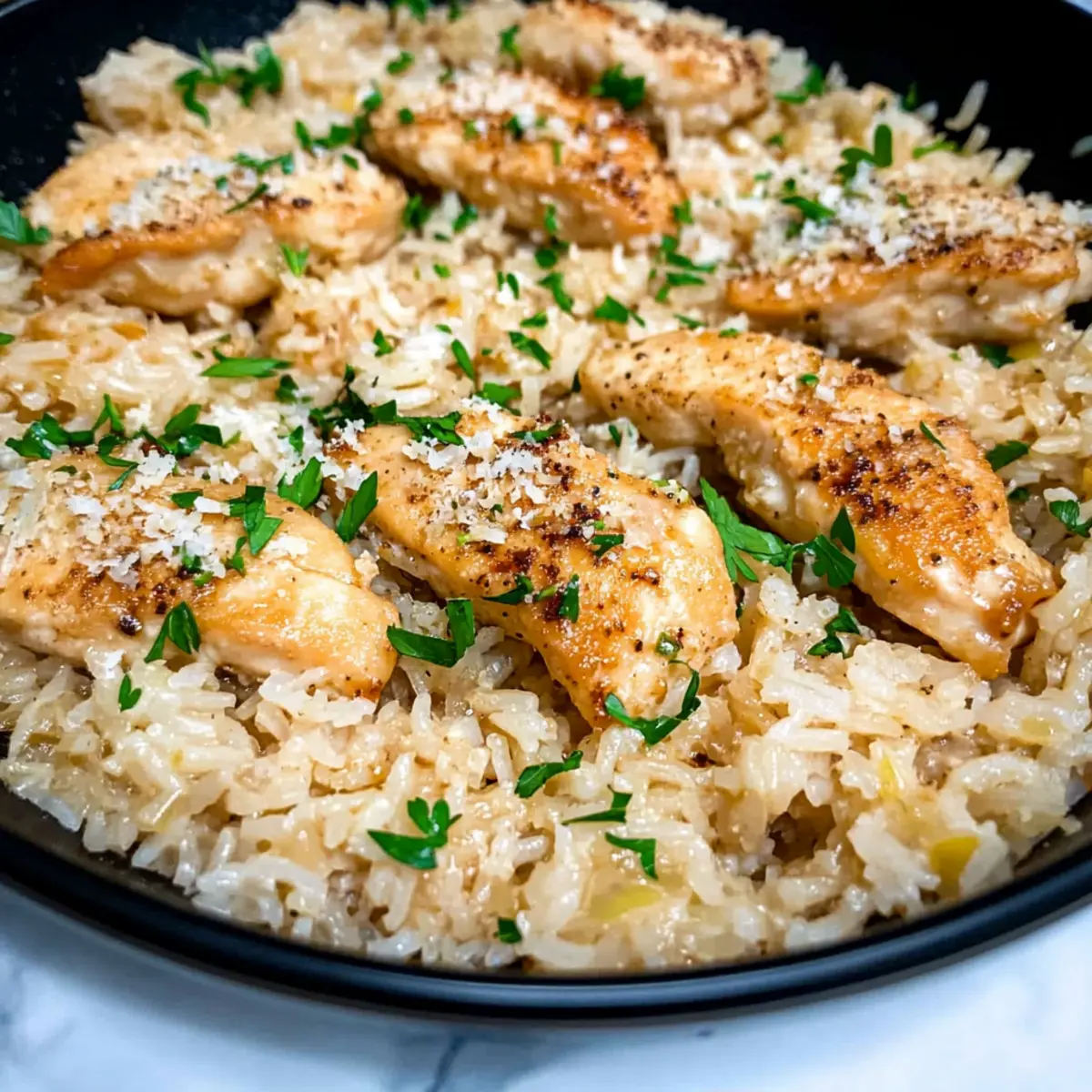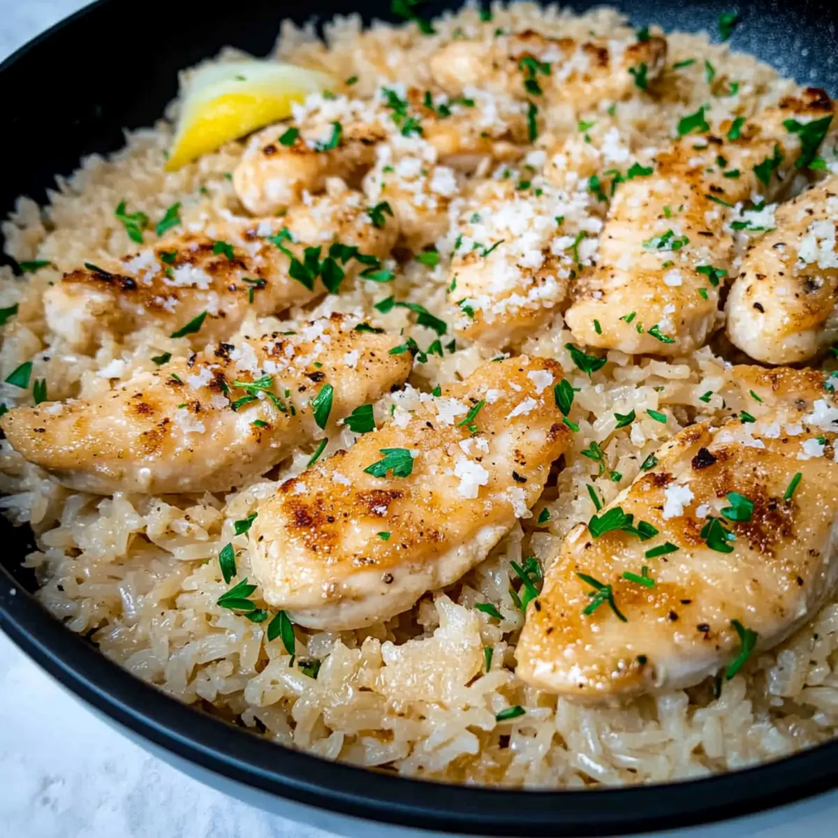 One-Pan Chicken Scampi with Garlic Parmesan Rice Delight