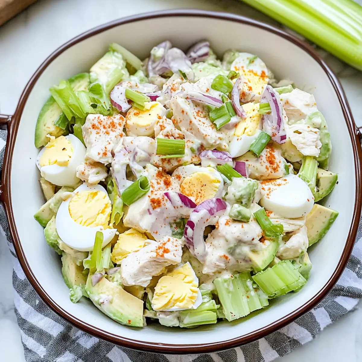 Healthy Twist: Clean eating has never been this delicious—no guilt here! Use this Avocado Chicken Egg Salad for a wholesome lunch or tasty snack that fits your dietary needs.