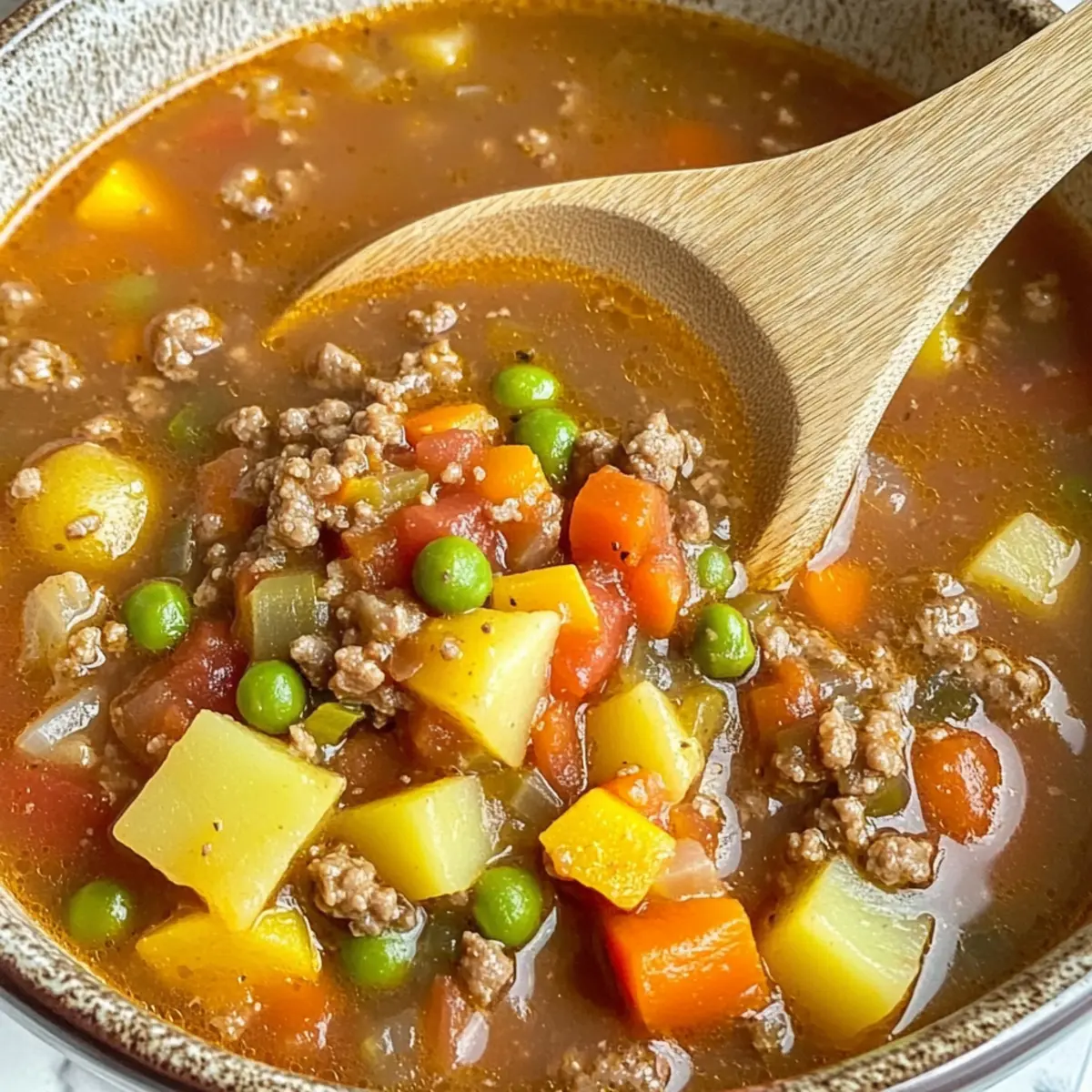 Comforting and hearty, this Hamburger Soup delivers all the cozy feels in just one pot! Easy to customize, feel free to swap in your favorite vegetables or spices to make it your own. Quick to prepare, it’s a fantastic solution for weeknight dinners when time is tight. Kid-approved and deliciously satisfying, it’s sure to become a family favorite. Pair it with crusty bread for a complete meal that rivals those quick fast-food options—no more takeout when you can whip up a homemade classic. For similar comforting recipes, check out this tasty Hamburger Potato Casserole that your loved ones will adore!