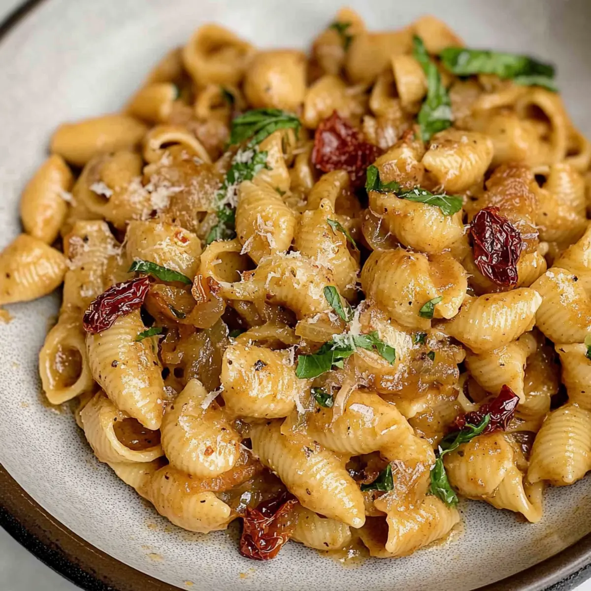 Red Wine: A light red like Pinot Noir pairs wonderfully, enhancing the umami flavors of the caramelized onions in the pasta.