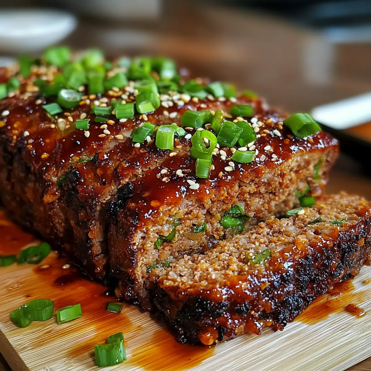 - Slice the meatloaf and garnish with chopped green onions and optional sesame seeds.