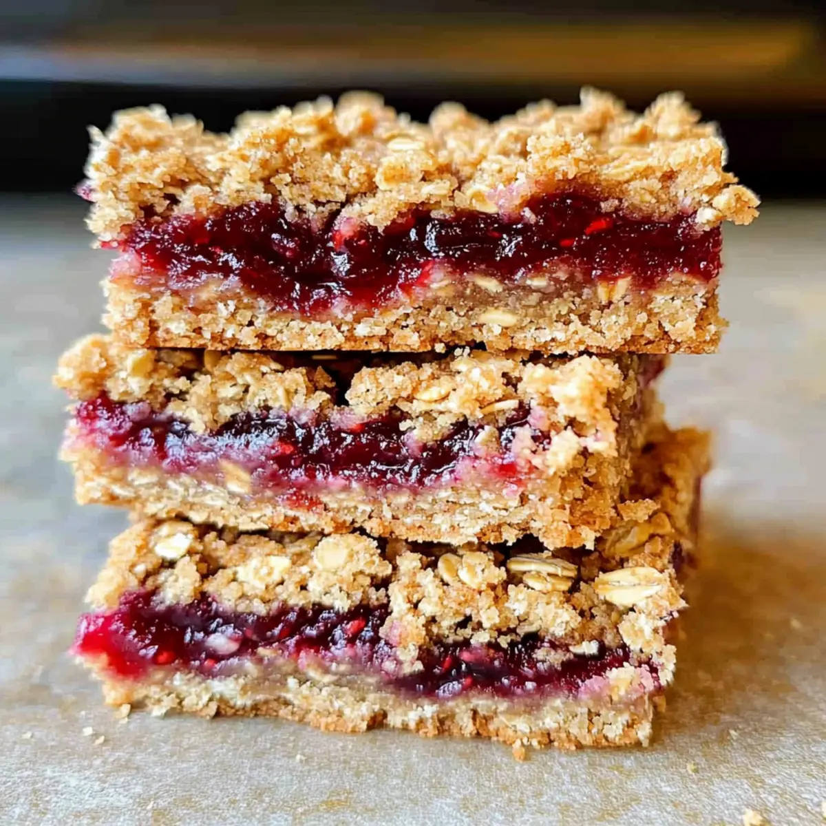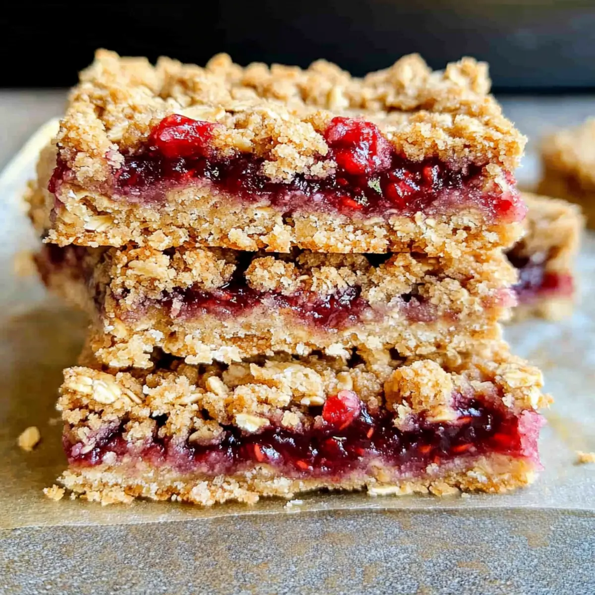 These Berry Oat Bars are perfect for meal prep enthusiasts! You can prepare the base mixture up to 24 hours in advance by combining the dry ingredients with the coconut oil and sweeteners, then store it in an airtight container in the refrigerator. The filling can also be measured and mixed in advance, allowing for quick assembly when you’re ready to bake. Just press the base into the pan, spread the raspberry preserves, crumble the topping on top, and pop it in the oven. When they’re ready to serve, allow them to cool slightly for optimal texture; they’ll be just as delicious as if made fresh!