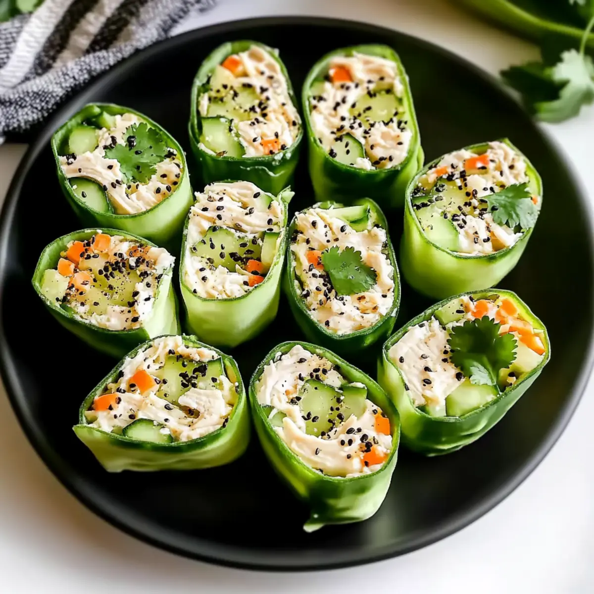 Low-Carb & Gluten-Free: Whether you’re on a low-carb or gluten-free diet, these Chicken Salad Cucumber Roll Ups fit the bill perfectly, making them a guilt-free indulgence.