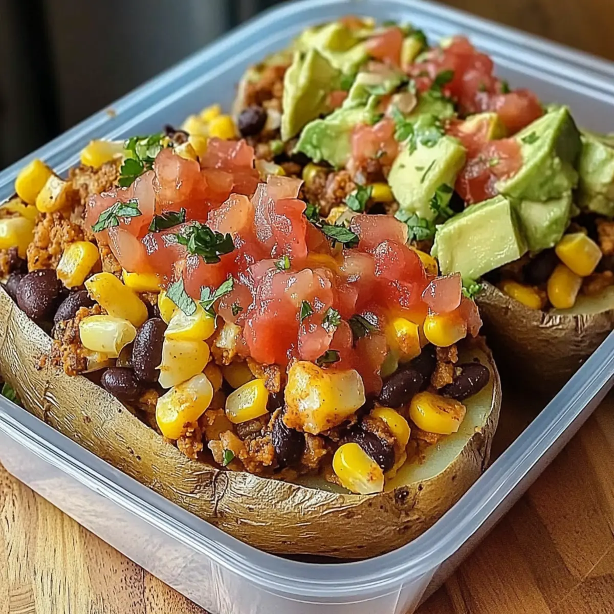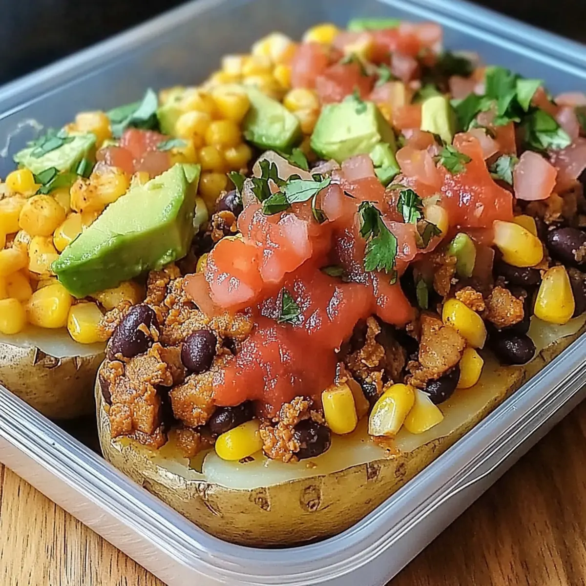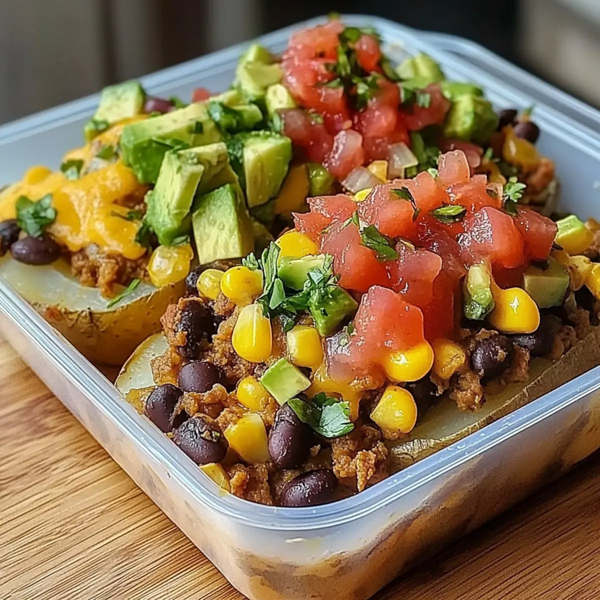 These Loaded Potato Taco Bowls are a fantastic choice for meal prep, saving you time on busy weeknights! You can bake the potatoes up to 24 hours in advance; simply cool them, wrap in foil, and refrigerate. The filling—comprising the cooked ground beef or turkey, black beans, and corn—can also be prepared up to 3 days ahead and stored in an airtight container in the fridge. When you’re ready to serve, reheat the potato halves in the oven for about 10 minutes, then fill them with the prepared mixture, top with cheese, and bake until bubbly. This ensures your Loaded Potato Taco Bowls are just as delicious as when freshly made!