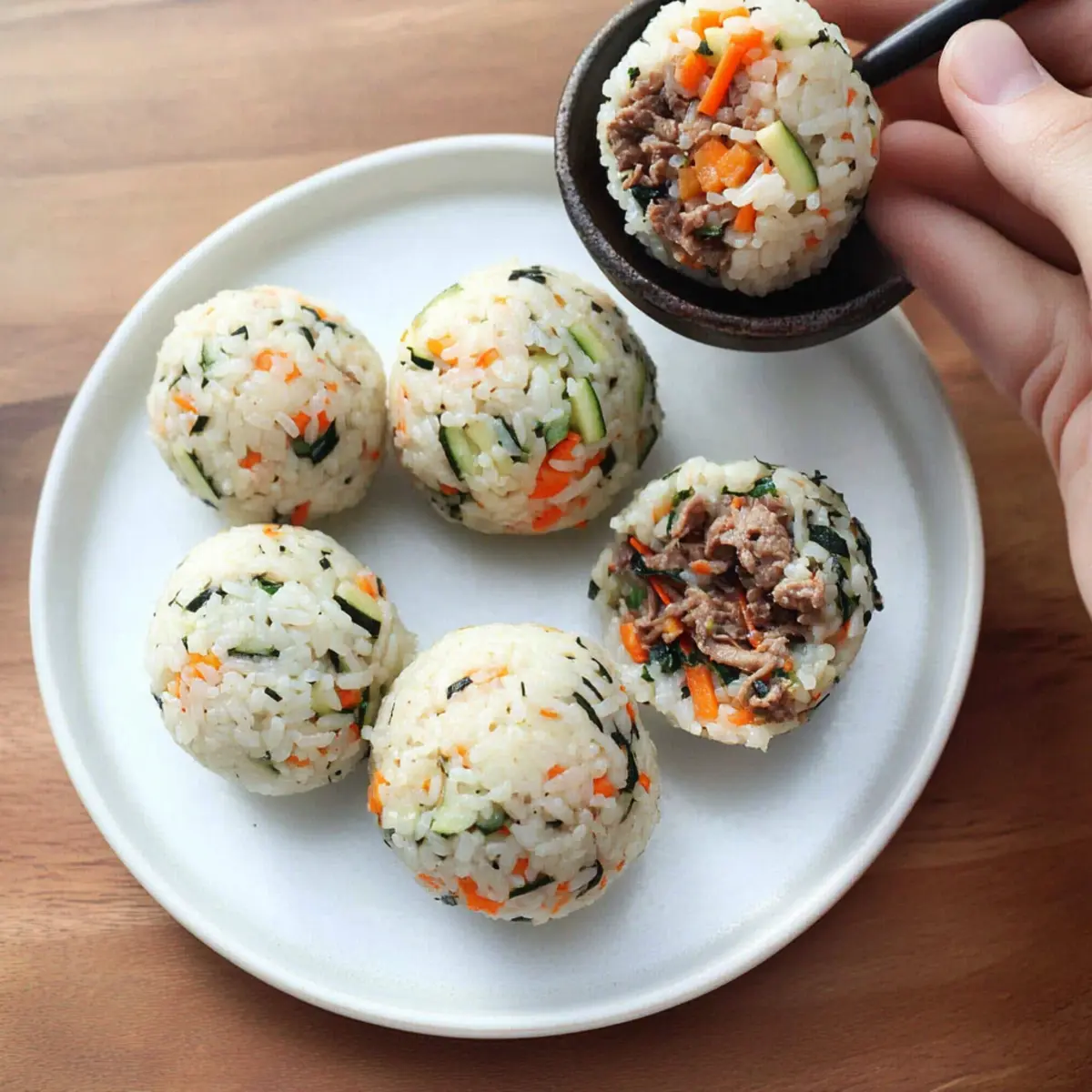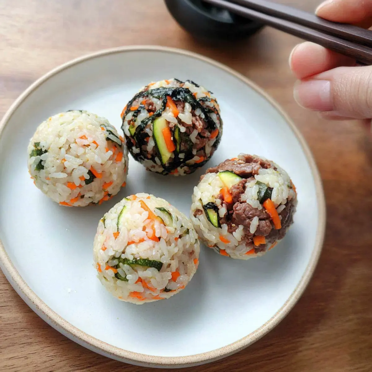 - Veggie Delight: Replace bulgogi with sautéed mushrooms and spinach for a hearty vegetarian option. Packed with flavor, this combo adds freshness and color to your rice balls!