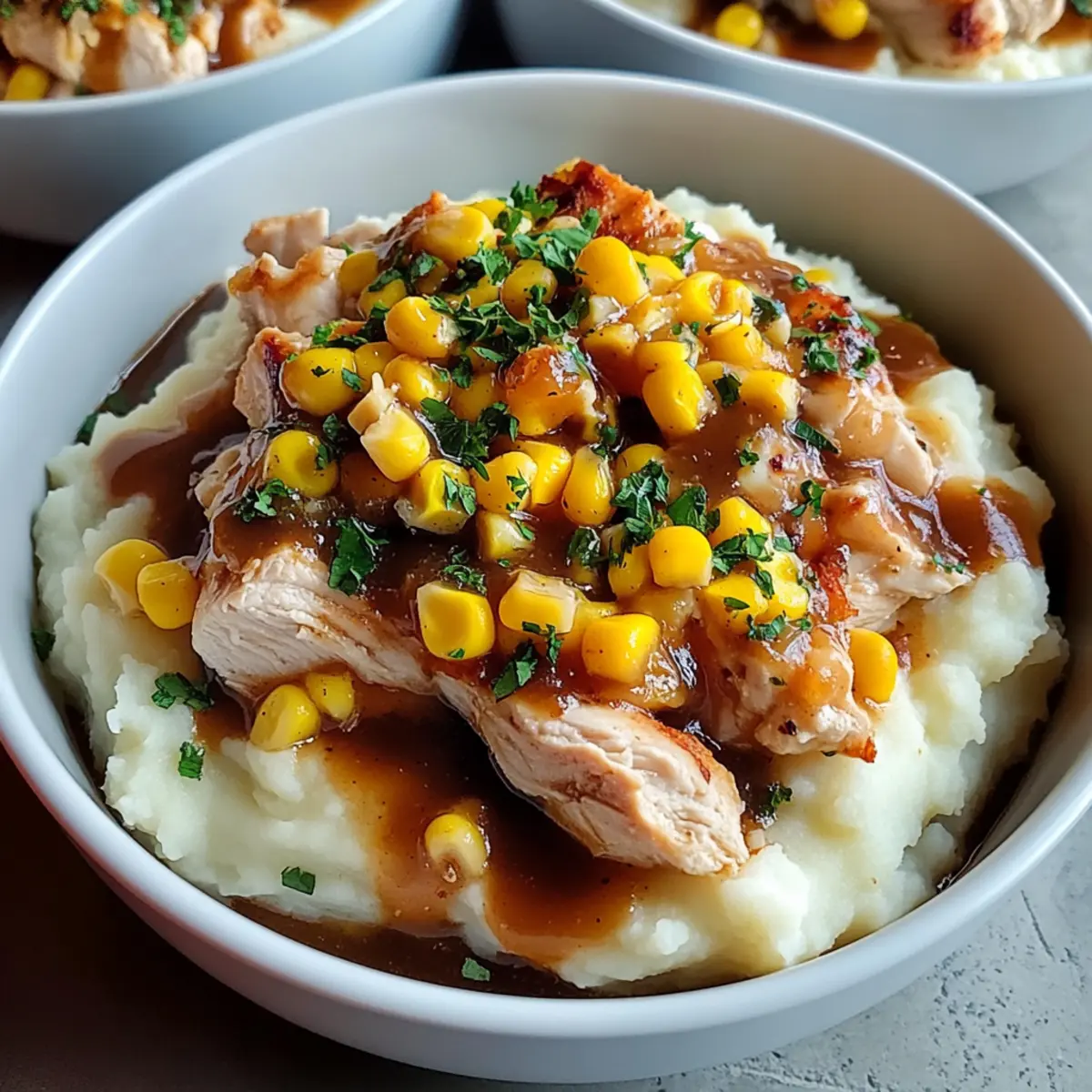Comfort food bliss: These hearty bowls combine all your favorites—creamy mashed potatoes, tender chicken, and rich gravy—creating a satisfying meal.