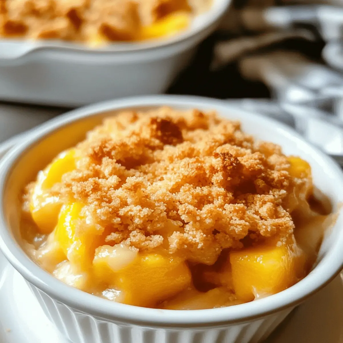 It’s important to store any leftovers properly! Keep your mango crumble in an airtight container in the refrigerator for up to 3 days. Just be sure to allow it to cool completely before sealing it to maintain that lovely texture. Reheat in the oven for the best results, as microwaving can make the topping soggy.