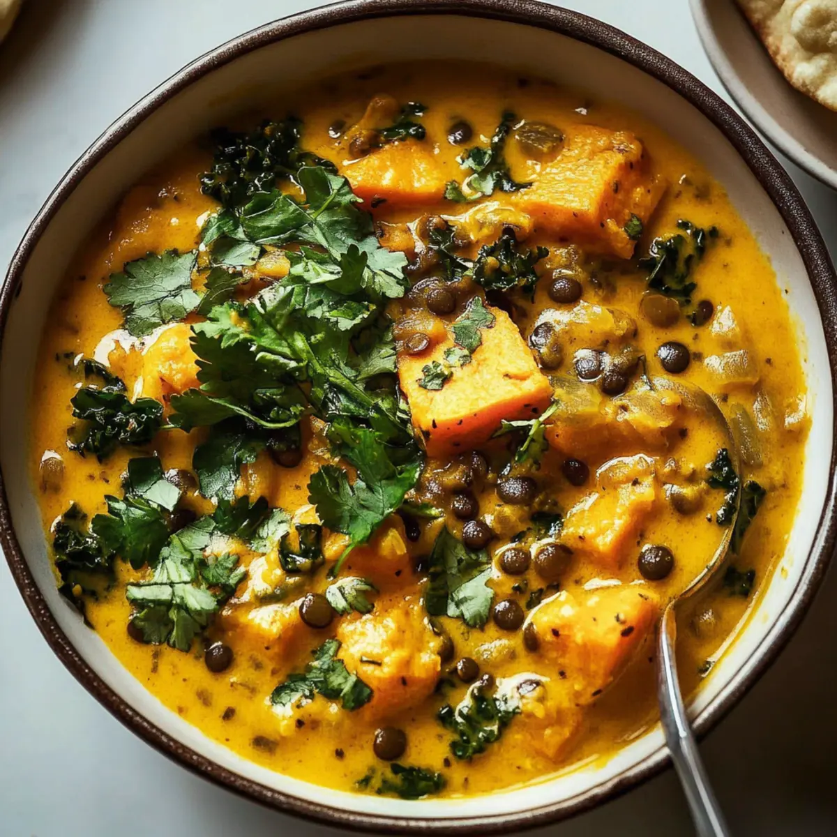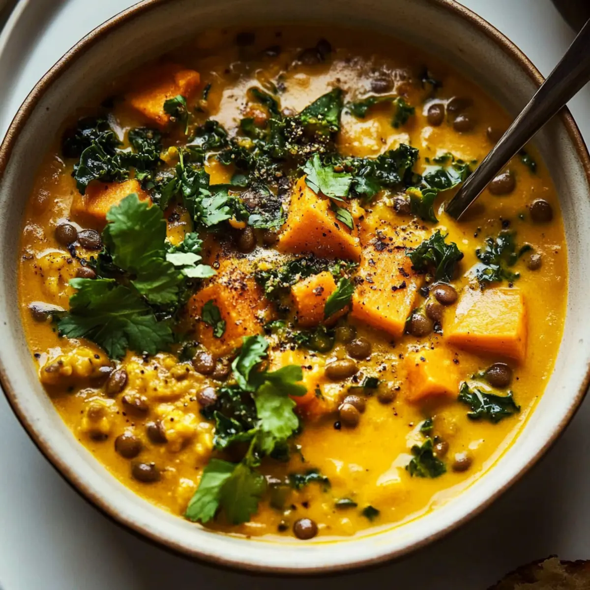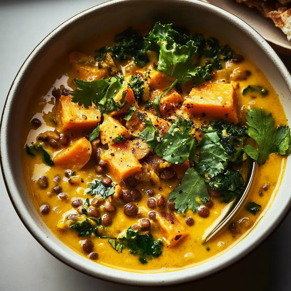 Ginger Sweet Potato Coconut Milk Stew with Lentils & Kale Magic