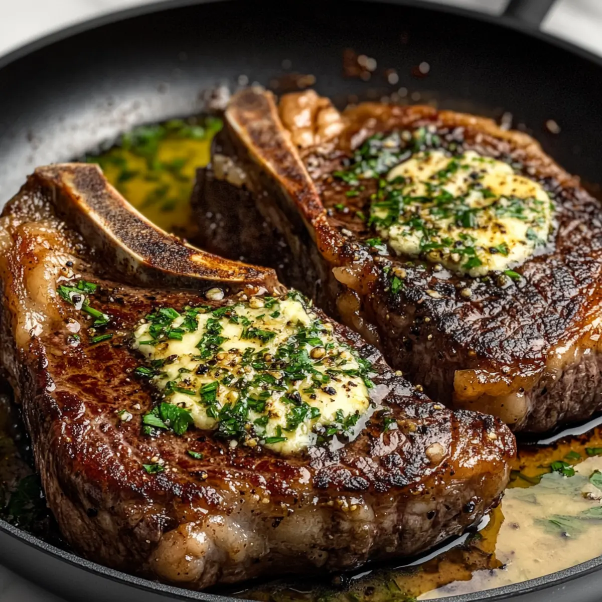 Mouthwatering Pan-Seared Bone-In Ribeye with Herb Butter
