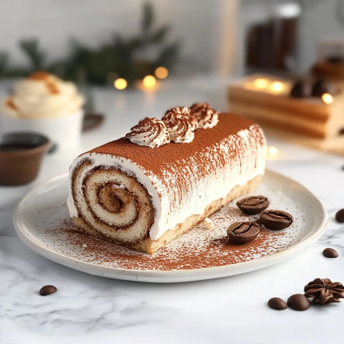 This Gourmet Tiramisu Yule Log Cake combines rich coffee flavors and creamy mascarpone, making it the perfect festive dessert.