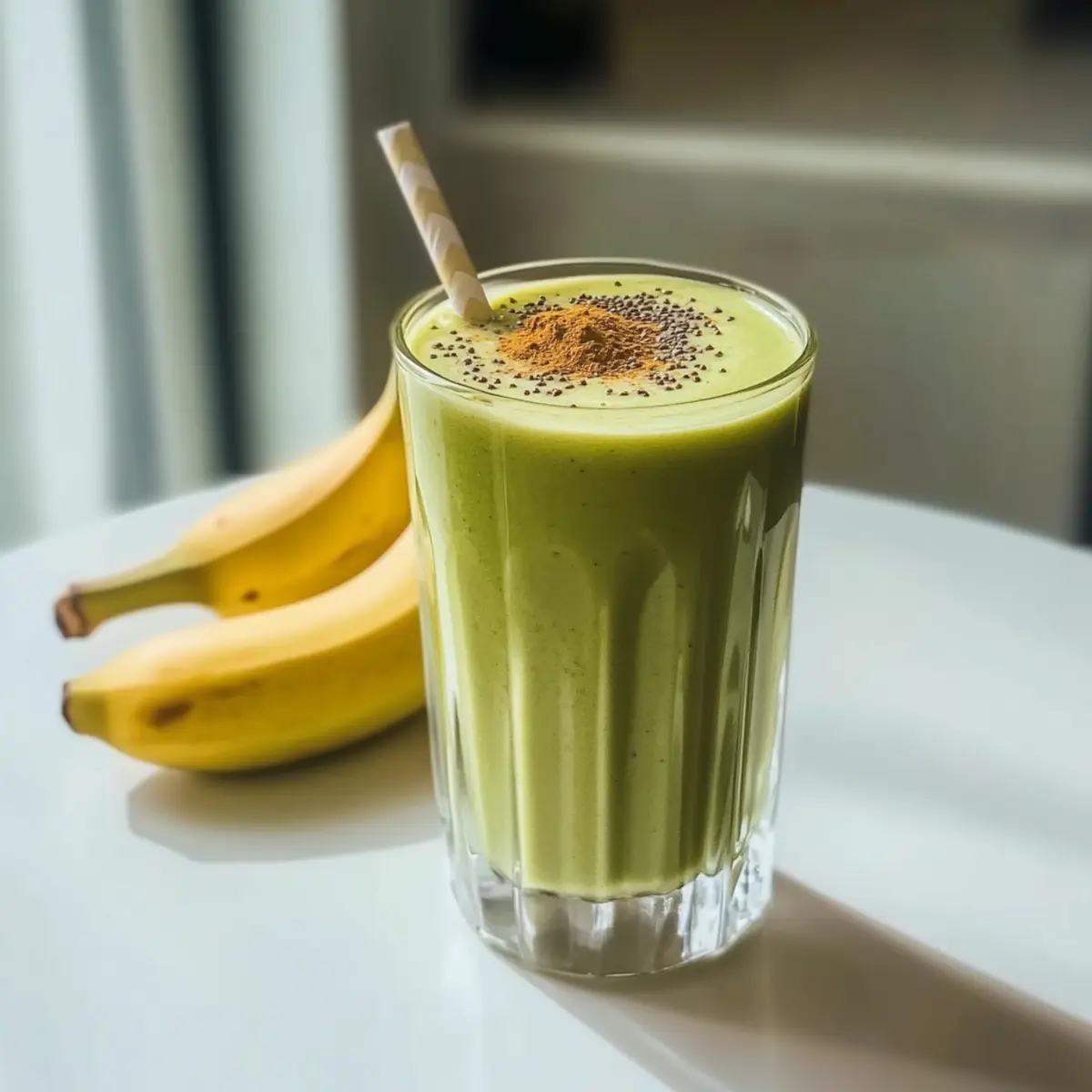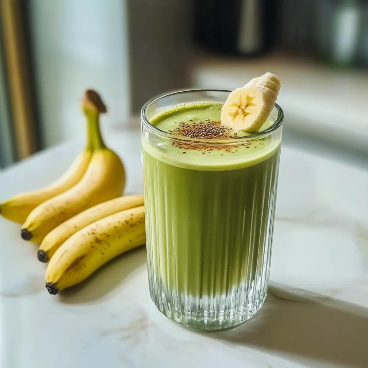 Preparing your Banana Matcha Smoothie ahead of time can save you precious minutes during busy mornings! You can peel and slice the ripe bananas and store them in an airtight container in the refrigerator for up to 24 hours. If you’re feeling extra organized, you can also pre-measure your matcha powder and chia seeds for quick access. To maintain the smoothie’s freshness and quality, blend everything just before serving—this way, you’ll preserve its vibrant green color and delicious flavor. Simply combine the prepped ingredients with your choice of milk, blend until smooth, and you’ll enjoy an energizing drink with minimal effort!