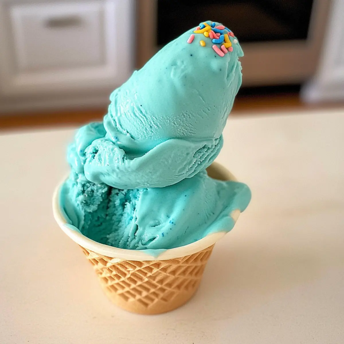 When you’re ready to serve your homemade Blue Moon Ice Cream, take it out of the freezer and let it sit at room temperature for about 5-10 minutes. This will soften the ice cream slightly, making it easier to scoop and ensuring a delightful creamy texture that will melt in your mouth.